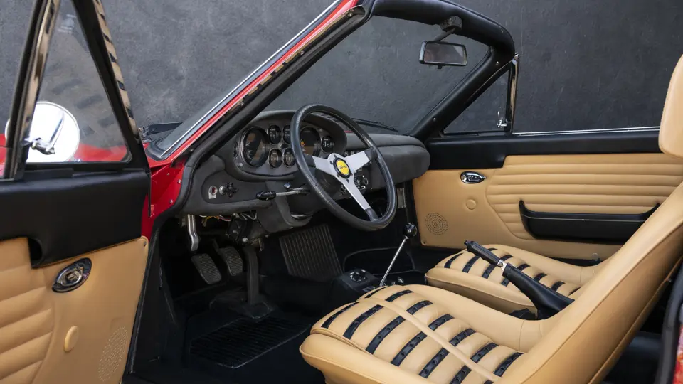 - Authentic “Chairs & Flares” Dino 246 GTS, distinguished by its Daytona-style seats and widened wheel arches