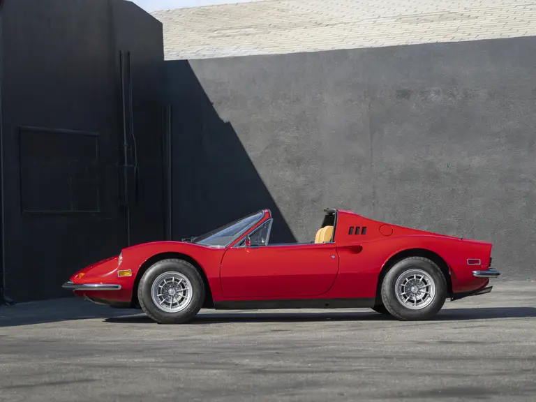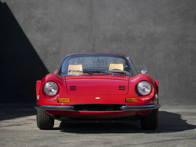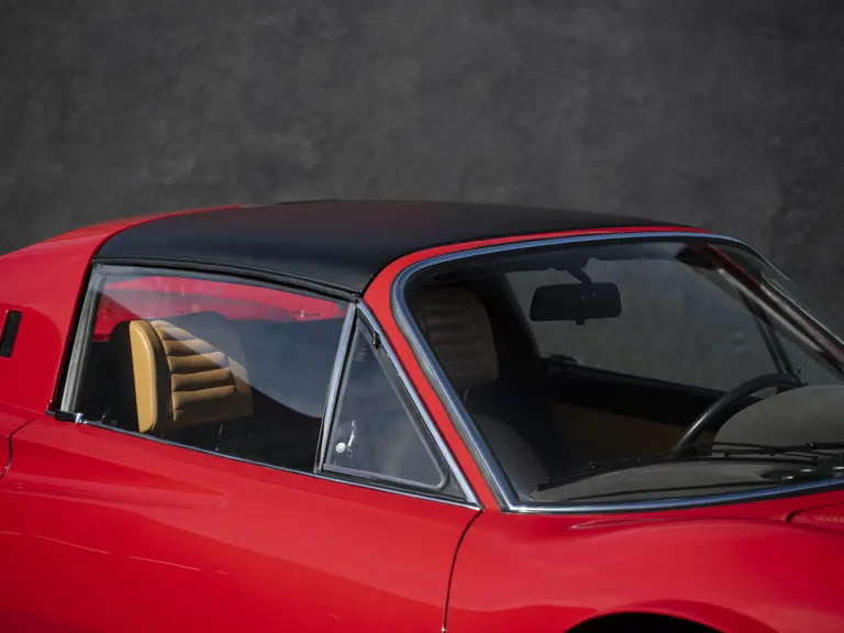 The 246 GTS was delivered new to Younge Steeles Motors of Thornhill, Ontario, and later sold to its first Canadian owner in early 1974. Another individual in British Columbia acquired the 246 GTS in 1987, reportedly with 31,000 miles on the odometer. Several years later, the car was exported to the United States and sold in 1996 through Chris Cox’s Prova Inc. to a Los Angeles-based collector, who commissioned a restoration, which included refinishing the interior in tan leather. The Ferrari was subsequently presented at concours events before spending the next decade within a private collection.