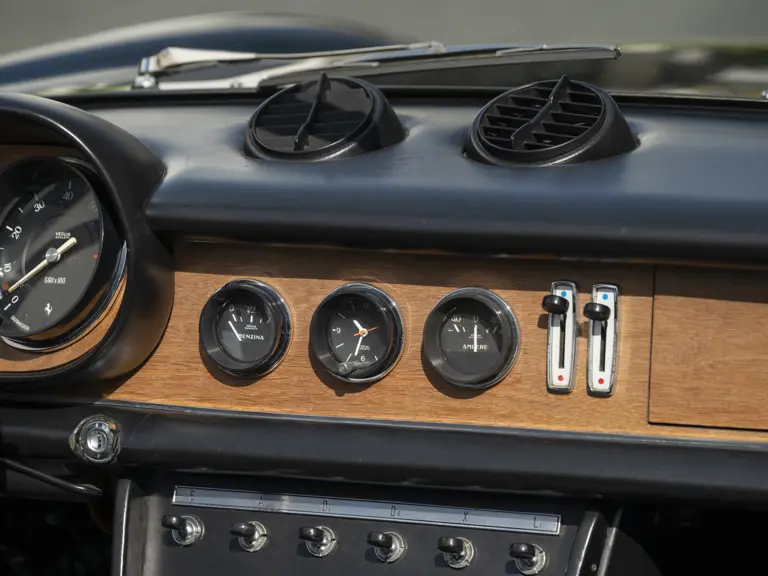 According to the research of marque expert Marcel Massini, this car was factory-finished in the beautiful color scheme of Azzurro (light blue metallic) over a Nero leather interior. Originally specified for the European market, the Ferrari was issued a certificate of origin in April 1970, and a month later the car was distributed to M. Gastone Crepaldi, the famed marque dealer in Milan.