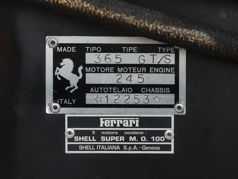 Originally finished in a fabulous and rare paint color, and benefiting from a mechanical and cosmetic freshening completed in 2024–2025, this matching-numbers engine and gearbox 365 GTS is the sixth of only 20 examples built—a rarity that cements its status as a top-shelf Ferrari collectible.