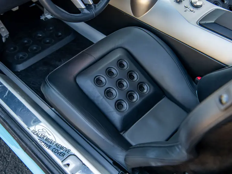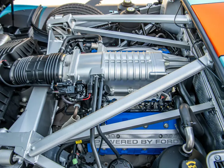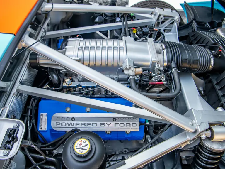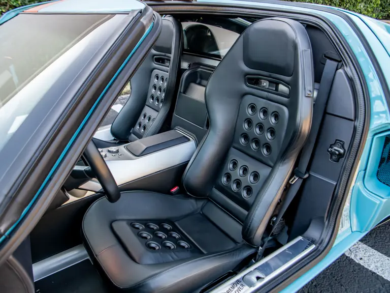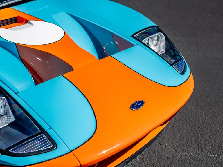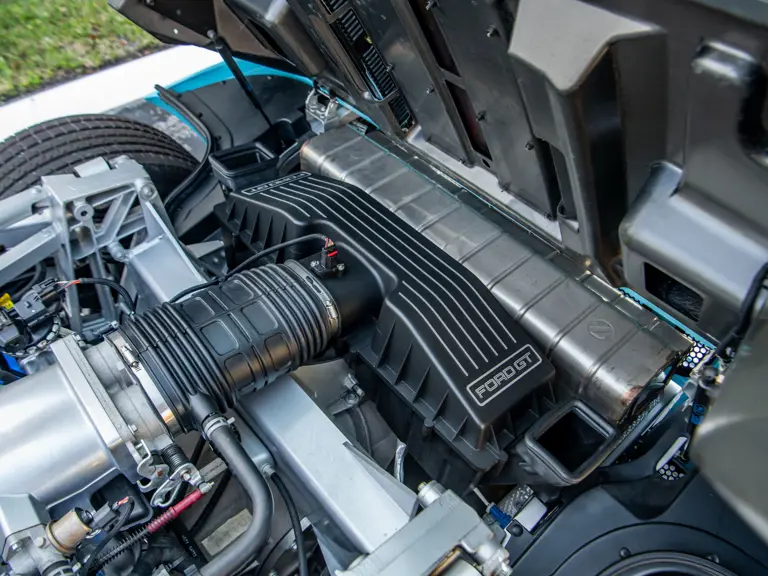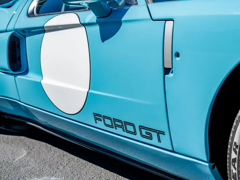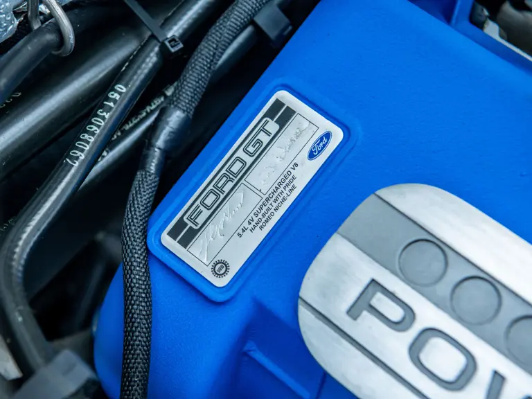 Today this GT Heritage Edition has covered just 661.8 miles at the time of cataloguing and remains in largely original condition throughout. The factory blank white roundels give the next owner the opportunity to add a number of their choosing. This GT Heritage Edition is accompanied by owner’s manuals with pouch, Ford GT certificate, and Deluxe Marti Report.
