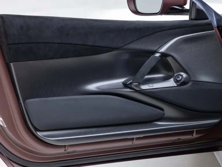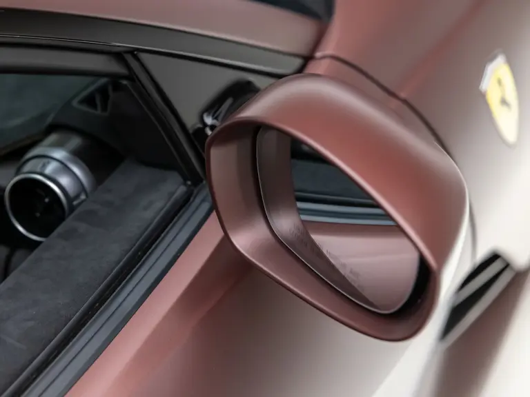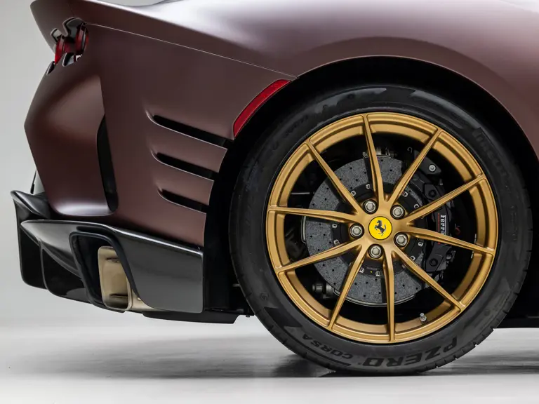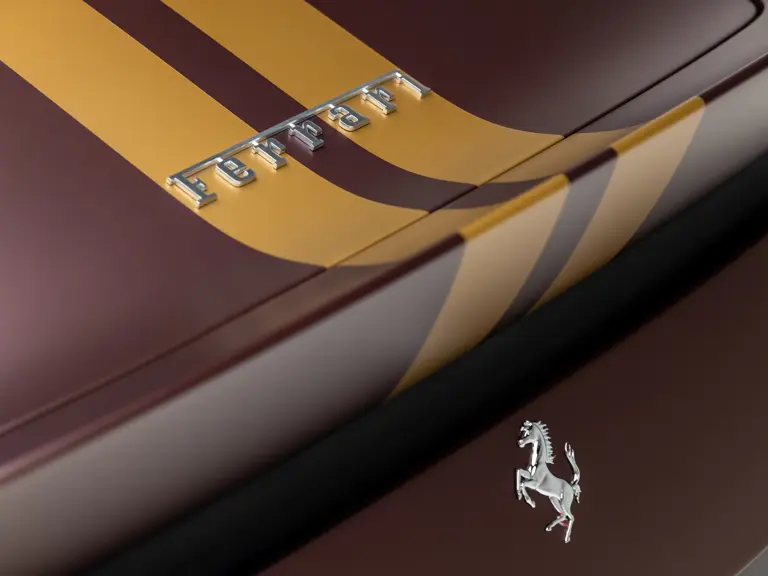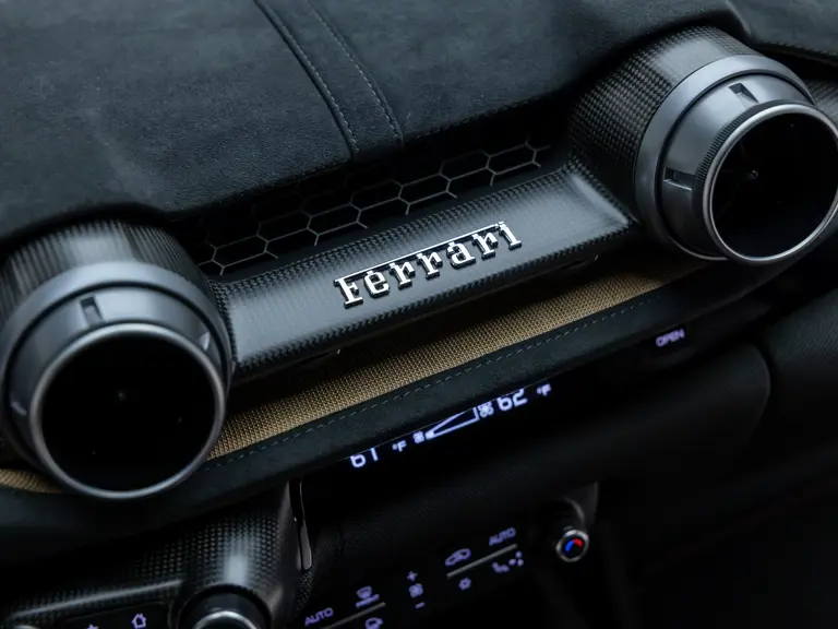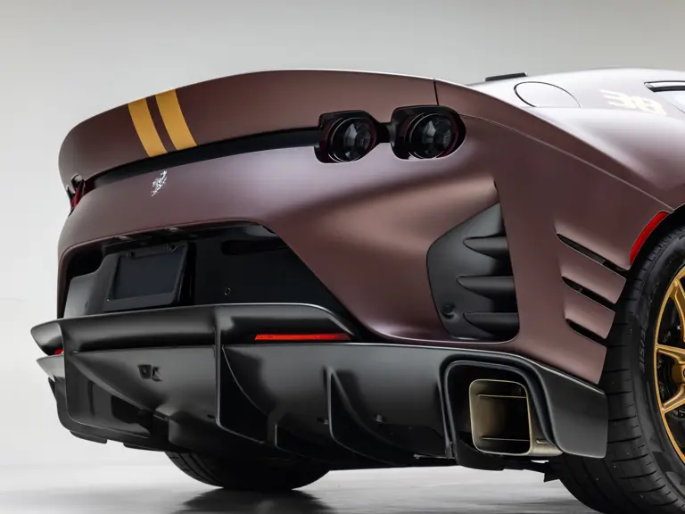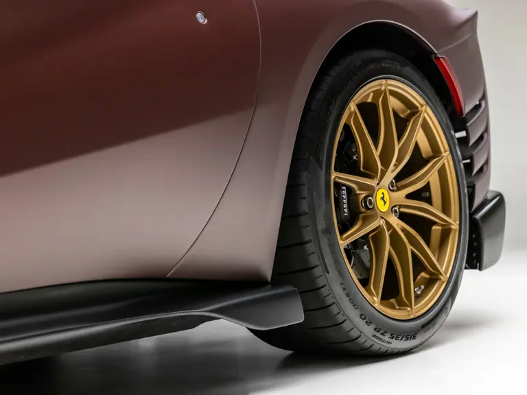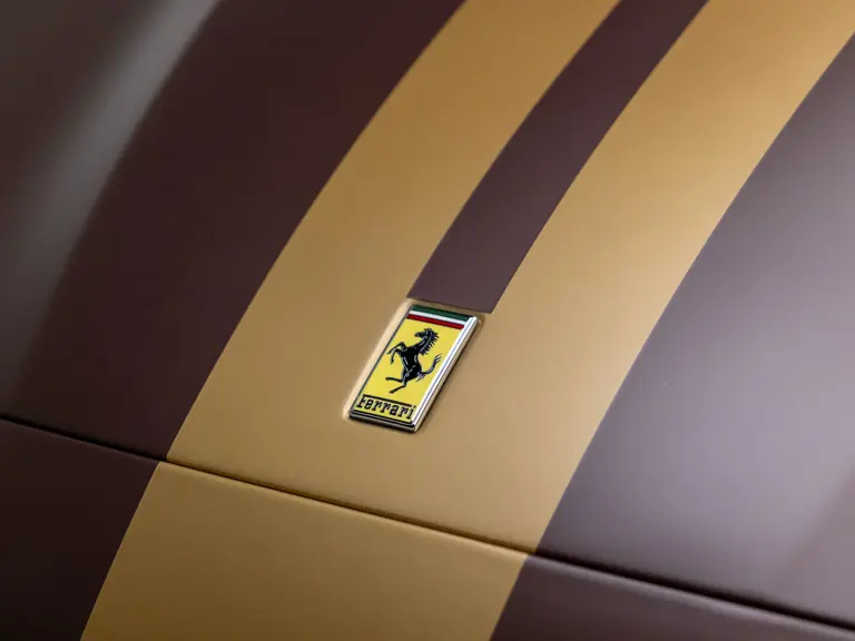 Keen observers will notice the number 38 in Matte Gold behind the driver and passenger windows—a nod to the 38 turns on the Circuit de la Sarthe, home of the 24 Hours of Le Mans, a location where so many great Ferrari racing cars achieved glory. Beneath the hood, the signatures of Formula 1 drivers Charles Leclerc and Carlos Sainz are inscribed in silver ink on the engine compartment air filter boxes, another direct tie to Ferrari’s motorsport legacy.