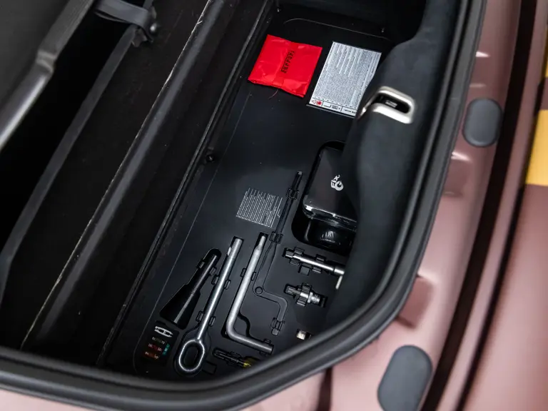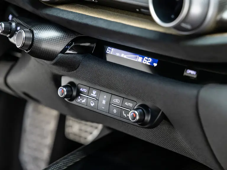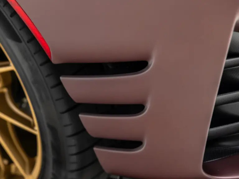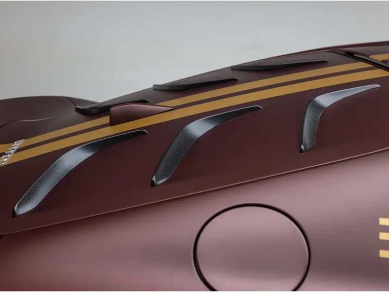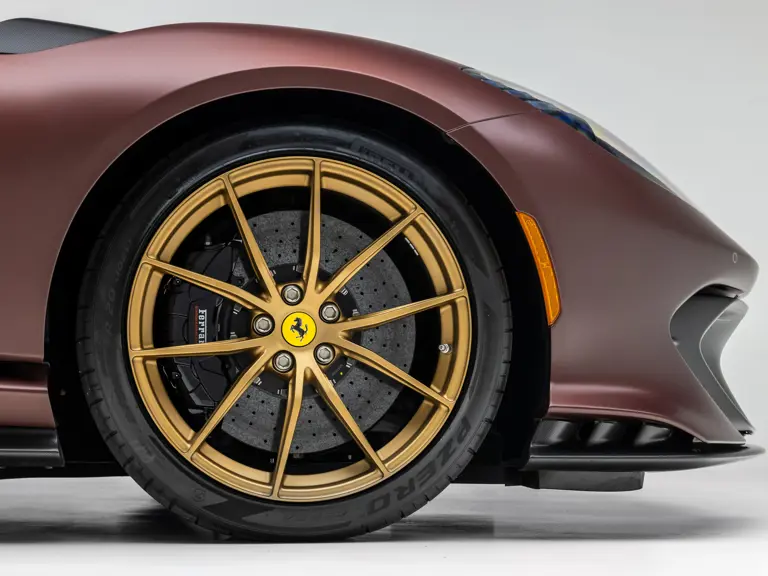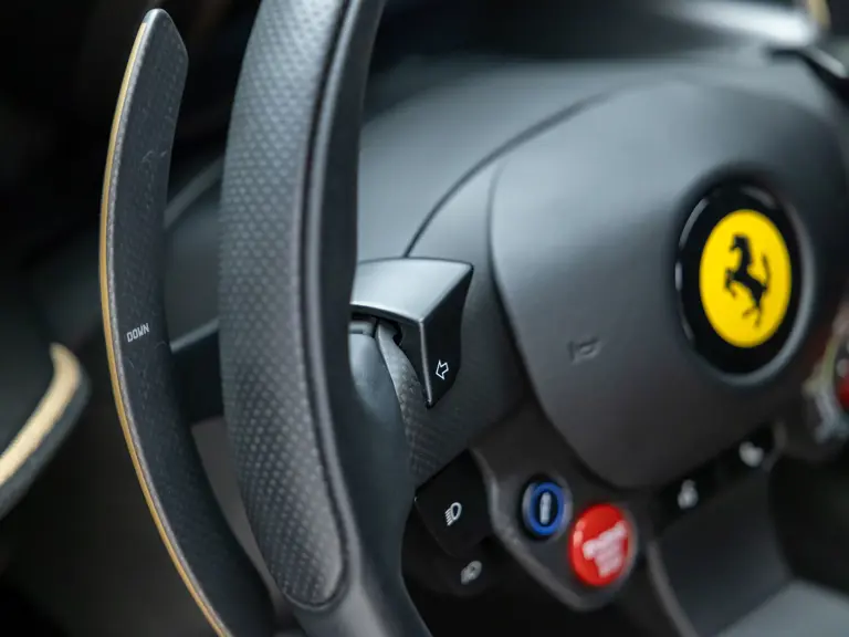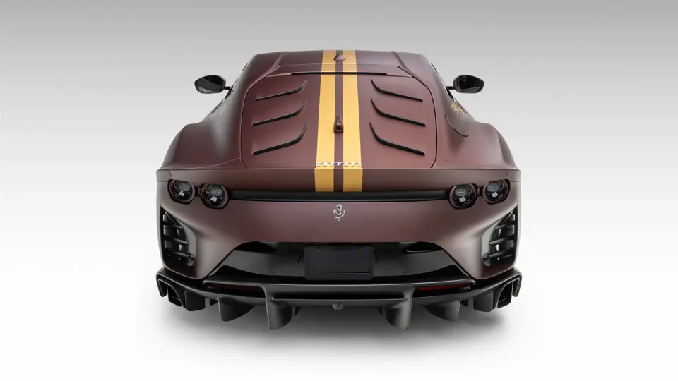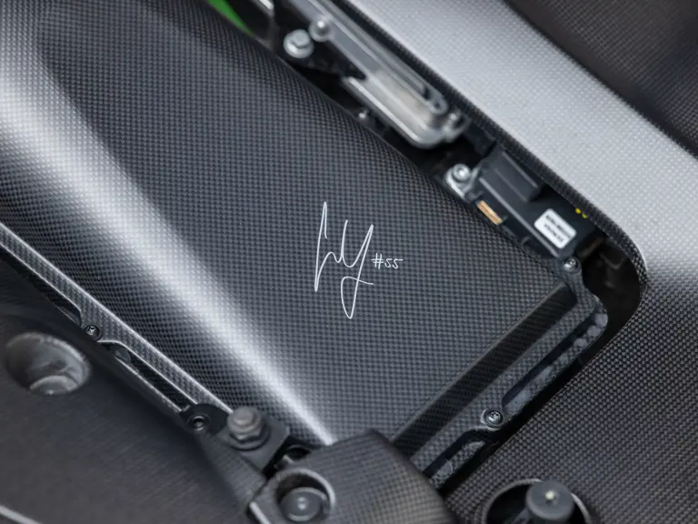 Keen observers will notice the number 38 in Matte Gold behind the driver and passenger windows—a nod to the 38 turns on the Circuit de la Sarthe, home of the 24 Hours of Le Mans, a location where so many great Ferrari racing cars achieved glory. Beneath the hood, the signatures of Formula 1 drivers Charles Leclerc and Carlos Sainz are inscribed in silver ink on the engine compartment air filter boxes, another direct tie to Ferrari’s motorsport legacy.