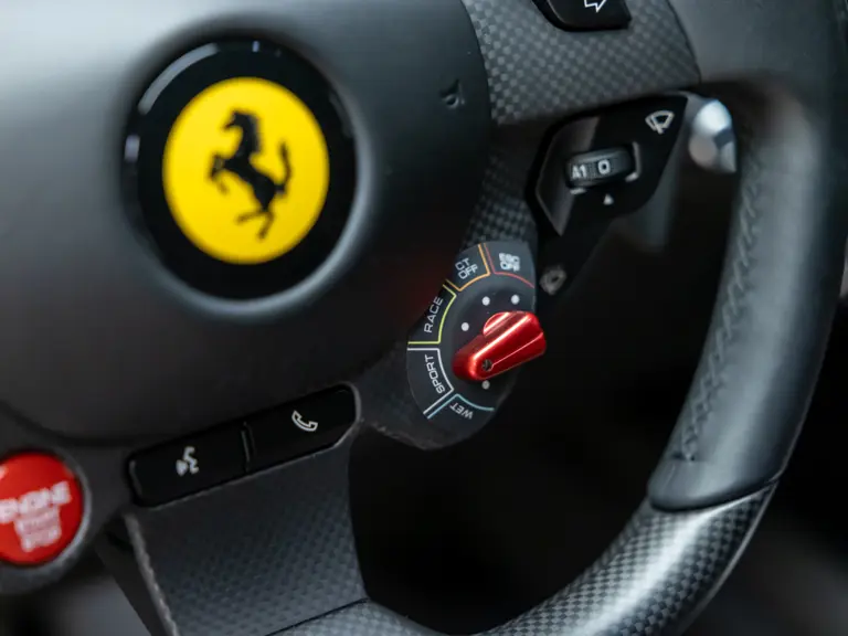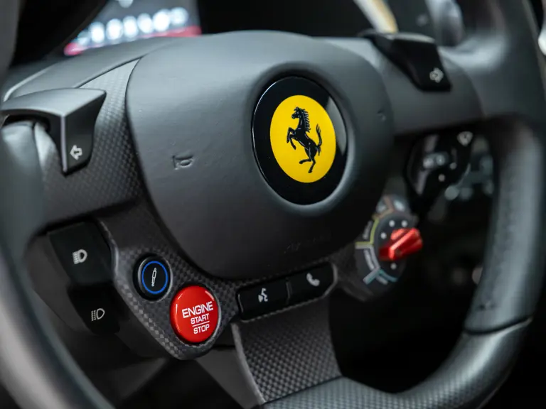 True to its name, every aspect of the Competizione is engineered for performance. The rear buttresses and unique carbon-finned hood are not mere visual cues, as they enhance downforce and reduce turbulence, contributing to a level of aerodynamic efficiency previously unseen in a front-engined Ferrari. The four-wheel steering system and Ferrari’s E-Diff limited-slip differential system grant the Competizione extraordinary agility and surgical precision on both road and track.