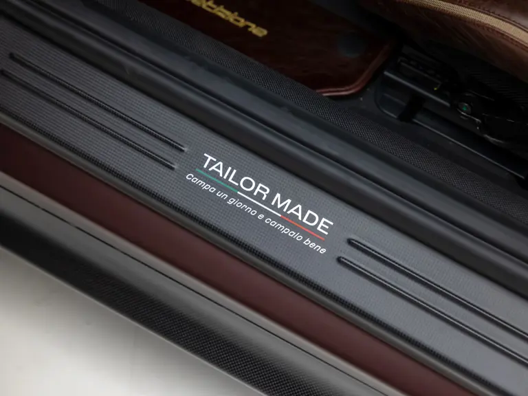 As a crowning touch, the motto found on the carbon fiber Tailor Made door sill kickplate exhorts the car’s owner to Campa un giorno e campalo bene—Live each day and live it well.