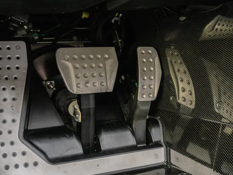 The heart of LaFerrari is a mid-rear-mounted, 6.3-liter V-12 engine directly lifted from the developmental FXX model. With an impressive compression ratio of 13.5:1, the V-12 developed 789 horsepower, redlining at a whopping 9,250 rpm. The 516 pound-feet of torque arrive relatively high, just shy of 7,000 rpm. An electric motor derived from the company’s Formula 1 Kinetic Energy Recovery System (KERS) was installed in the rear, adding 161 horsepower, greatly improving response and acceleration at lower rpms. In total, the two powertrains combined for a head-spinning 949 horsepower and 663 pound-feet of torque, propelling the slippery LaFerrari to 60 mph from a standstill in as little as 2.4 seconds. The quarter mile arrived in 9.7 seconds at 149.2 mph, besting both the Bugatti Veyron and the Porsche 918.