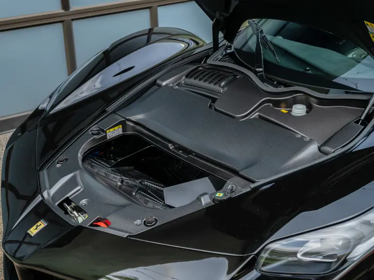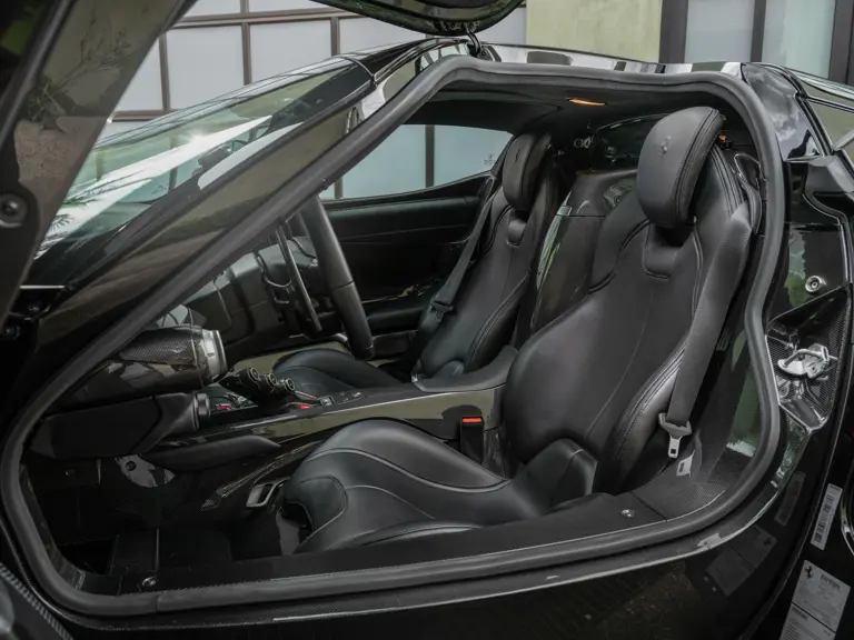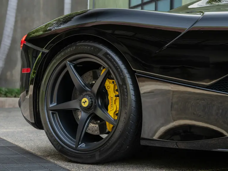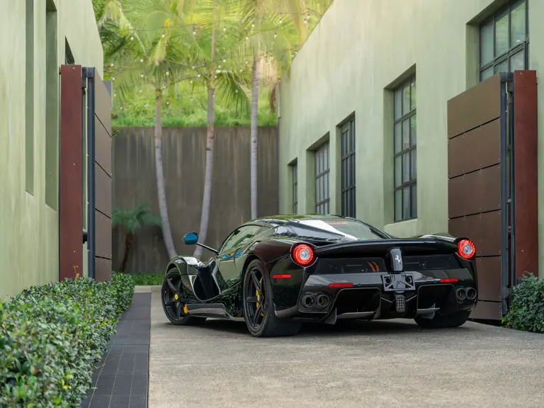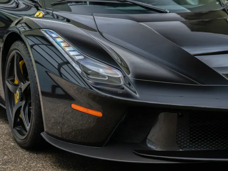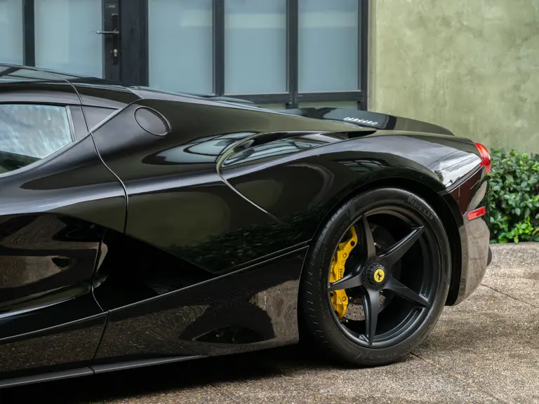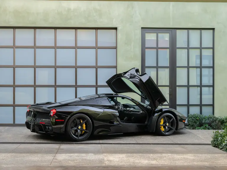 Displaying 554 miles at the time of cataloguing, this one-owner LaFerrari was delivered new to California in March 2015. Finished in a menacing shade of Nero with bright yellow brake calipers, the interior was specified to match with black leather seats, and a black dashboard composed of Alcantara leather and plenty of carbon fiber.