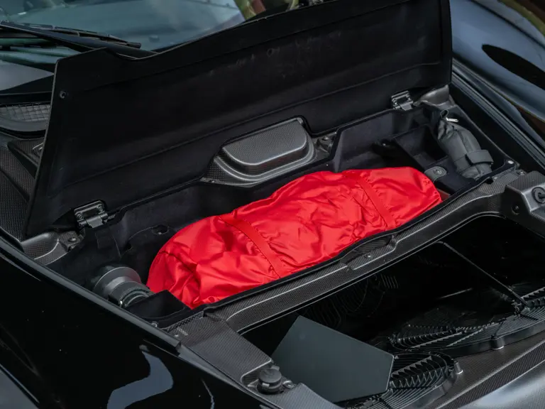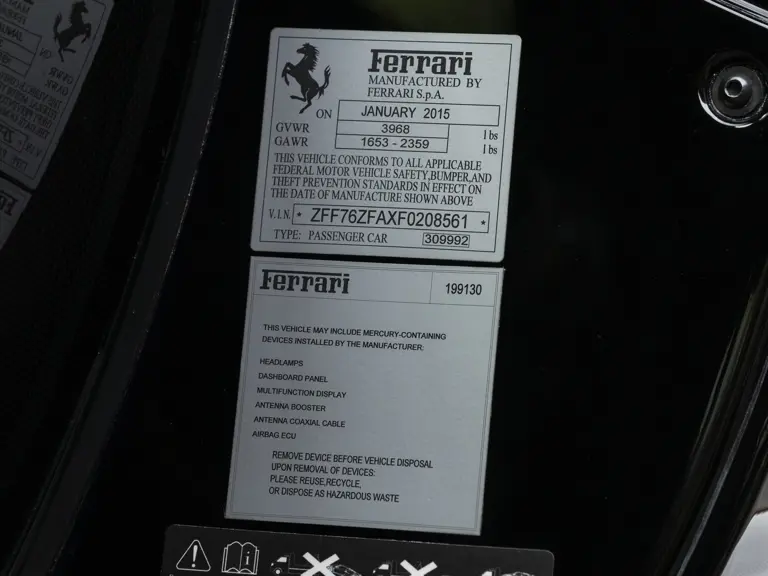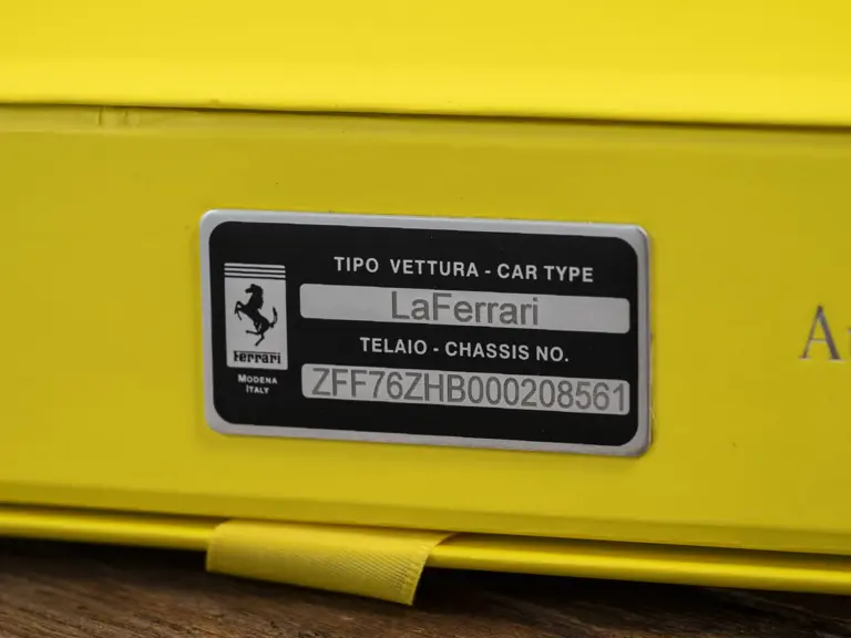 The accompanying window sticker details several options including sport exhaust pipes and carbon fiber pieces including the rear fog lamp, lower trim, and outer mirrors. Including the unspecified “Special Features” listed on the document, the total original MSRP for this LaFerrari amounted to $1,491,181. A copy of the Classiche Yellow Book will additionally accompany the vehicle.