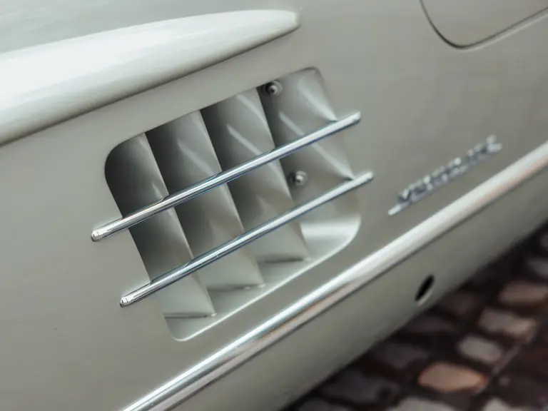 L’ispezione conferma l’originalità delle punzonature dei numeri di telaio e motore, benché le targhette siano state sostituite come da prassi all’epoca del restauro. Inoltre, la vettura monta una testata sostitutiva che risale al 1960. Un particolare degno di nota è che il motore ha l’ambita specifica NSL con alberi a camme da competizione “code 00” risalenti al gennaio 1956. Si prega di notare che, secondo il rapporto di ispezione dettagliato in archivio, raccomandato per la revisione da parte degli offerenti interessati, questa vettura ha non è stata originariamente consegnata con le ruote Rudge così come sono state montate.