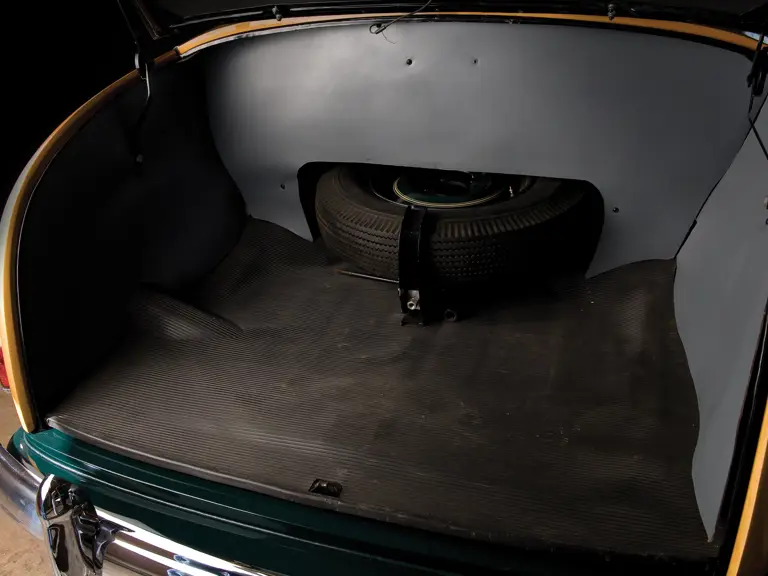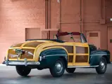 Owned by Melville Warren Garbitt in the 1970s, the car received an AACA National First Prize in 1991. Highly-respected woodie collector Nick Alexander purchased it in February 1995 before it received the Early Ford V-8 Club’s Dearborn Award at Dearborn in 1998, scoring 995 points. Alex Devello, Nick’s wood specialist, drove this car to Dearborn and back, accounting for about half of the 10,000 miles acquired since restoration. This car’s Columbia overdrive axle makes highway travel very pleasant. A nice example of one of the latest 1947 Sportsman models, it is unparalleled for open air motoring. Cruising characteristics were further enhanced with a four-inch Mercury crankshaft, and later a Mercury cam, expertly installed by Tim Krehbiel to increase horsepower while retaining a factory-stock appearance. Acquired by the current owner in 2009, it remains a timeless classic and unquestionably one of the most desirable woodies available—a combination of wood-bodied elegance with the joys of open-air motoring.