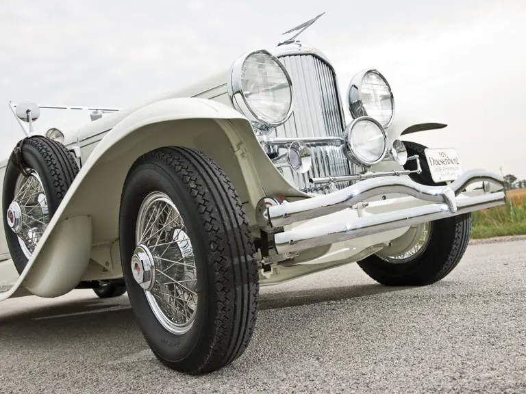 As-restored, it shows a mere 73 miles on the odometer and is finished as it originally was, in white with matching white chassis, and sports a flawless, highly attractive, light camel leather interior with tan carpeting. The chromed wire wheels are shod with sleek blackwall tires, which focus attention on the quality of the early Murphy convertible coachwork. It is also equipped with the original dual side-mounted spare tires with pedestal mirrors and retains all of the unique Murphy features that make this a one-off custom. In May 2012, it was awarded Best of Show at the second annual Celebration of Automobiles, which took place at the Indianapolis Speedway on the opening day of the historic 500 race. As presented, it would make a great tourer or concours entry and also retains ACD certification D-065. It has been featured in Fred Roe’s Duesenberg: The Pursuit of Perfection, as well as twice in the Auburn-Cord-Duesenberg Club newsletter. The new owner can be assured that with the quality of the Roxas restoration behind it, it will remain in high-point condition, as long as it is well looked after, and will remain a truly unique, exceptional example of the fabled marque.