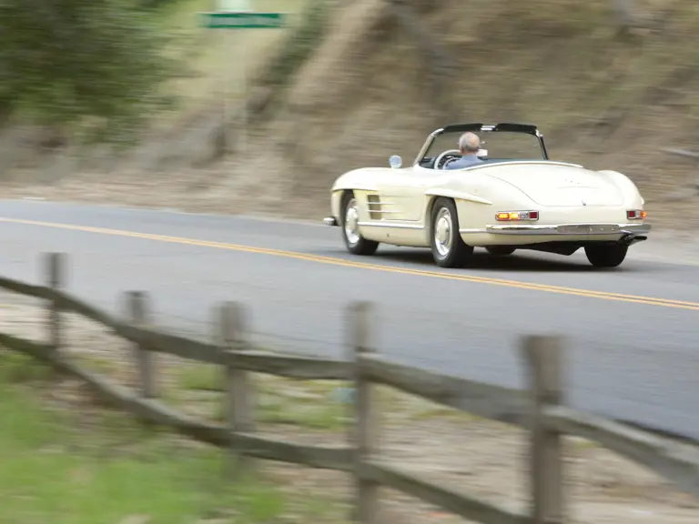 In 1967, Mr. Burklein and his family moved to Tucson, Arizona, and the Mercedes went with them. It was driven sparingly and always well maintained, being resprayed in white sometime in the 1980s. It remained in Mr. Burklein’s Tucson estate all those years, until its purchase by the second owner, Mr. Mischler, of Scottsdale, Arizona, in 2009, ending the original ownership chain that had remained intact for half a century! At this point, the car had less than 42,000 original miles on the odometer, for an average of less than 1,000 miles per year. Mr. Mischler commissioned famed 300SL restorer Bill Richardson, of Richardson Restoration & Machine Werks in Phoenix, Arizona, to perform a full, no-expense-spared, four-year restoration, at a cost of several hundred thousand dollars. Originality was Mr. Mischler’s prime interest, and it was decided that the car would be restored to its original color combination and specifications, down to the last detail.