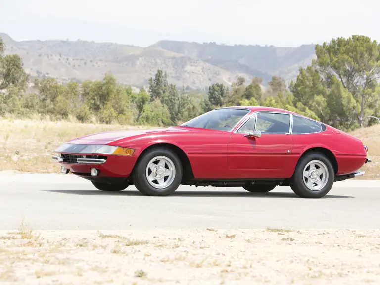 The 4.4-liter Colombo-derived V-12 proved to be quite capable of providing its driver with all the speed he or she so desired, and when topped with six Weber carburetors, output stood at about 350 horsepower, which provided for a very impressive 0–60 time of 5.9 seconds and a top speed of 174 mph, the highest top speed of any production car ever produced at its introduction. But this was no stripped-out racer built simply for speed. Like the other Ferrari berlinettas before it, the Daytona’s interior was wrapped in sumptuous leather and proved to be a wonderful place to be in for long journeys. The boot was more than big enough for a weekend’s worth of luggage for two, proving that it was versatile enough to tangle with other high-strung European sports cars on the track or even be used as a daily driver by a discerning enthusiast.