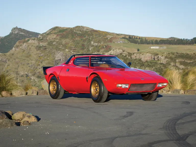 A year later, the glowing orange Stratos HF (for “High Fidelity”) prototype debuted at the 1971 Turin Auto Show. The Stratos’ stunning design was entrusted to Marcello Gandini, and in a nod to the car’s competition intentions, he featured a large wraparound front windshield on it, to offer an enormous outward view for its driver. The futuristic yet decidedly 1970s Stratos stood just under 44 inches tall and tipped the scales at a hair over 2,100 pounds.