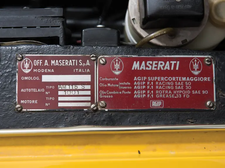 Following the conclusion of Maserati’s testing and development of chassis 1001, regular production began and 1001 was sold to its first private owner, Mr. Antonio Capuano, of Italy, in October 1969. Capuano drove the car for six years before selling it in 1975 to Libero Girardi. Girardi, an Italian immigrant and Ferrari mechanic living in Rhode Island, imported chassis 1001 from Italy to the United States and sold it to his son-in-law, John Ferro.
