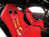 As the fifth and current model campaigned in the Challenge series, the 458 is, by far, the most technologically advanced of the series. It retains the same power output of a standard street-legal 458, but the gear ratios and calibration of the dual-clutch gearbox were changed in order to provide greater low-end torque. Performance was also increased due to a focus on reducing weight wherever possible, which was done by utilizing many carbon-fiber components and fitting thinner body panels. Brembo carbon-ceramic brakes and an advanced ABS system developed on Ferrari’s 599XX were also fitted to improve braking and handling performance. Yet another feature that differentiates it from its road-legal sibling is the Ferrari’s F1-Trac, which is a highly advanced traction-control system that continuously monitors grip to distribute the maximum amount of performance given the current track conditions. For cars destined for the American market, the standard Lexan side windows were completely removed and replaced with safety nets. This experience is normally reserved for just the driver, but the 458 Challenge comes equipped with a removable passenger seat for an instructor, or a lucky passenger, to ride along.