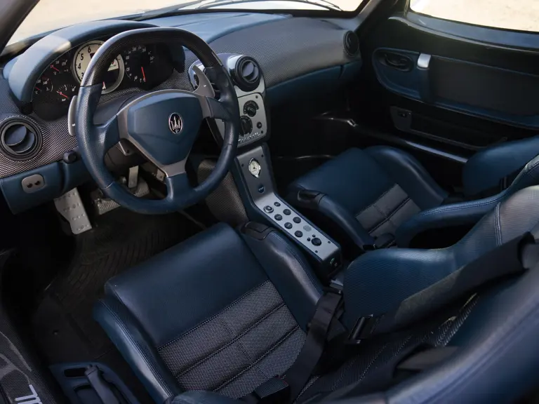 Purchased new to be a part of the Riverside International Automotive Museum, Mr. Magnon’s MC12 has been both enjoyed and well cared for since day one. Imported to the United States under the Show and Display law by Classic Coach of Elizabeth, New Jersey, the car was never registered for road use in Magnon’s ownership. Instead, it saw the majority of its mileage accrued on tracks such as Pocono Raceway and Laguna Seca during associated concours and Maserati Club events, while occasionally being driven in the industrial complex surrounding the Museum to ensure that it remained in good running and driving condition. According to a small file of invoices, the car’s windshield was replaced in January of 2008. While factory records supplied by Maserati note that this MC12 was originally fitted with engine number 000075, the car is currently fitted with engine number 000090, which is strongly believed to be its original engine. Those closest with the museum who knew this MC12 from new have no recollection of an engine replacement or major engine issues to speak of. Furthermore, no service invoices noting an engine replacement could be found at the time of cataloging to support this claim.