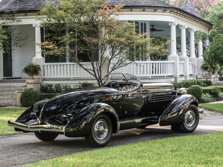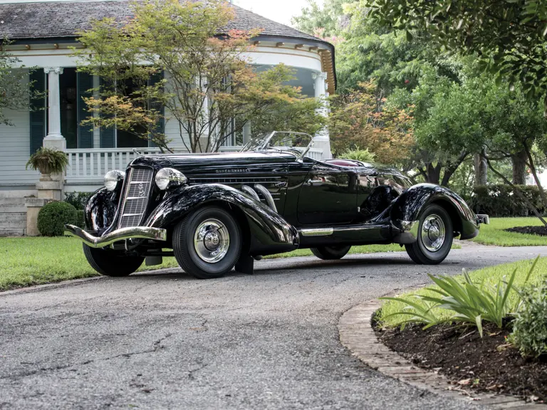 The audacious 1935–1936 Auburn speedsters boasted curvaceous “boattail” bodywork on a potent supercharged eight-cylinder chassis, with a two-speed rear axle for relaxed highway cruising. A perfect storm of engineering and beauty, these cars combine elegance and modern drivability into an outstanding touring machine. The model has been referred to as the one genuine American sports car of the Classic Era.