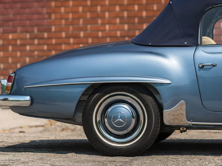 The impeccable 190 SL offered here has seen just 79 miles in the year since undergoing a comprehensive frame-off restoration performed by marque specialists at Titan Restoration. It is finished in a factory-correct shade of Light Metallic Blue (DB 356) and features an attractive Parchment leather interior. It also retains its rare original, and functional, wind-up clock. A set of tools and books are included with the sale.