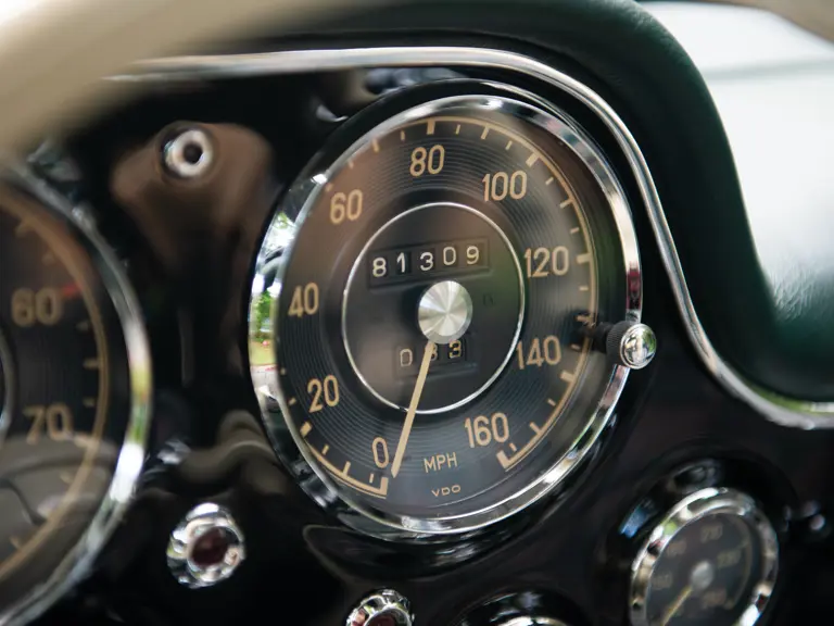 Eventually the Gullwing passed into the ownership of Fred T. Haddock, of Ann Arbor, with whom it remained for many years. It then came into the custody of a renowned marque specialist, who soon treated this wonderful Gullwing to a rotisserie restoration that left no stone unturned. Every mechanical and cosmetic component was fastidiously restored to original factory standards or replaced with correct new original stock parts. Likewise, the exterior was painstakingly refinished in a resplendently deep coat of Black, complemented with an interior of Dark Green vinyl and plaid seats, both correct colors included in Mercedes-Benz 1954 livery offerings.