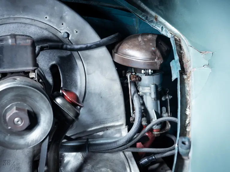 In 2008 the Type 64 was sold to the consignor, a dedicated enthusiast with one of the largest car collections in Germany. The car has continued to benefit from careful preservation and attention as needed under his custody. This includes the incredibly well-preserved interior that even retains the very seat fabric on which Ferdinand and Ferry Porsche previously sat. Furthermore, and most important, the original engine was kept by Otto Mathé until his death and was saved by a friend of the family, who later sold the engine to the present owner. That engine, no. 38/43, was properly overhauled and reunited with 38/41.