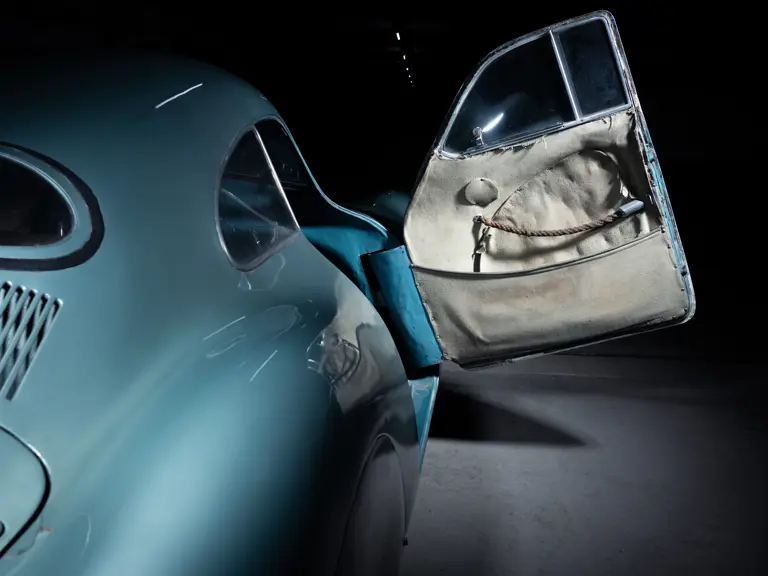 Publicly offered for the first time in its long history, this remarkable Type 64 is the ancestor of all Porsches, and one can easily discern its resemblance to the marque’s evolution through the years, right up to today’s 911 model range. The extremely important coupe is documented with a full history, with bibliography by German automotive author Hans-Karl Lange, including design drawings, period photographs, factory documents, and incredible correspondence between Ferry Porsche, Huschke von Hanstein, and Otto Mathé. It offers an unparalleled opportunity to acquire the holy grail of Porsches, a pre-war relic of inestimable value to the Zuffenhausen cognoscente.