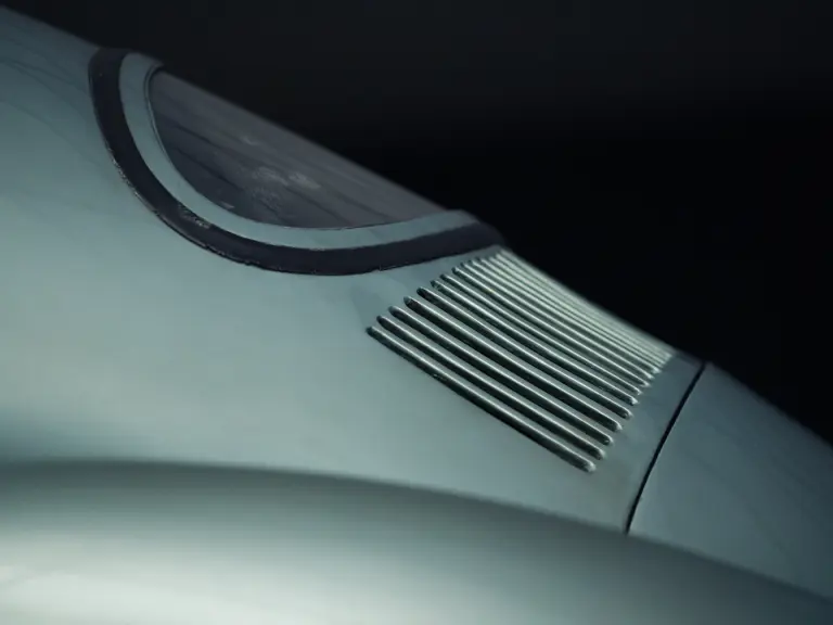 Though unconfirmed, it is believed that Reutter Karosserie was retained to build alloy coachwork for the Type 64, which featured a narrow two-seat cockpit, wheel spats front and rear, and a dual spare-wheel compartment under the front trunk lid (a contingency for the Beetle’s easily damaged tires). A split windshield and sliding-door windows completed the lightweight body, which was smoothly fastened to the outer skin in a series of more than 2,000 rivets.