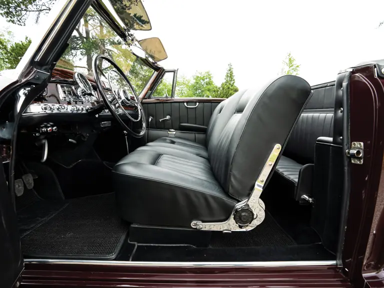 A very early production example, this roadster sports body no. 00001 and is thought to possibly be the first production 300 Sc. As originally specified, the roadster was finished in white (DB 50) over a Cream (1060) leather interior and fitted with a black convertible top. It was dispatched on 23 January 1956, and like many of the desirable roadsters at the time, it was slated for the renowned Mercedes-Benz distributor Max Hoffman in New York. For many years it was owned by Mercedes-Benz collector John Olson, who drove the car over 80,000 miles, including on several cross-country road trips. Olson bought it from Harry Woodnorth, who worked for Max Hoffman in the 1950s. After ten years of enjoyment, Olson sold the 300 Sc to Daniel Peterkin, CEO of Morton Salt Company. Peterkin bought it because he had owned another 300 Sc from new and always regretted selling it. The current owner acquired the car from film executive John Calley, who kept it at his home on Vancouver Island. Calley was president of Sony Pictures Entertainment and was also a passionate car collector who owned some incredible cars over the years. During Calley’s approximate ten-year ownership, it was maintained by marque expert Rudi Koniczek, very well-known for his work on Mercedes-Benz of the era. The roadster was stripped to bare metal and repainted to its current color during Calley’s tenure, and the body was found to be in excellent condition.