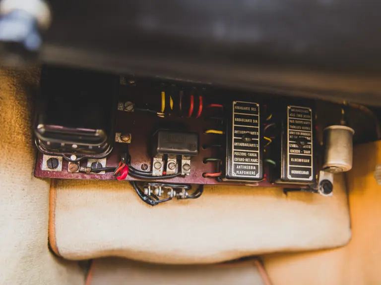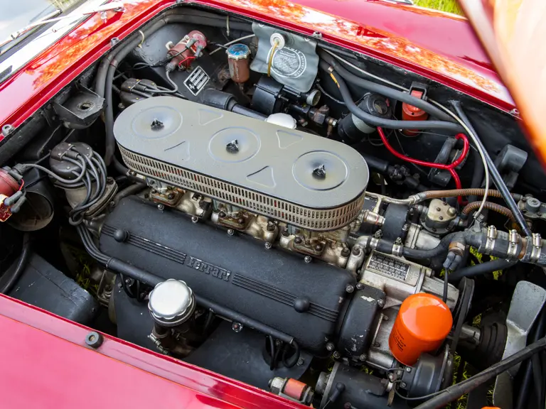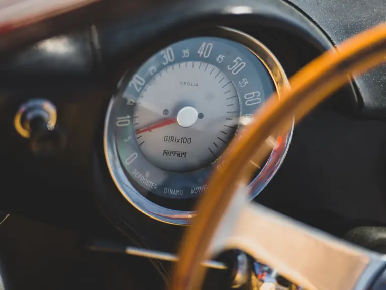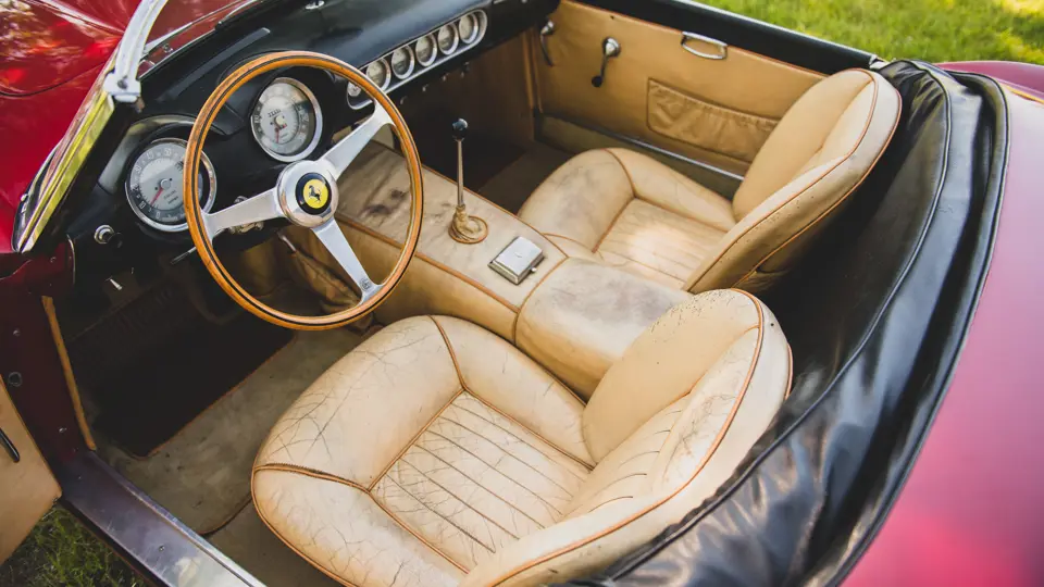 The car now shows 88,491 km at the time of cataloguing and, according to former owner George Carrick, remains virtually as he left it in the early 1980s. Even the delightfully patinated original leather interior remains intact, with an inviting and charmingly “broken-in” appearance, fairly begging a new owner to slip behind the wheel and drive the car as Ferrari intended.