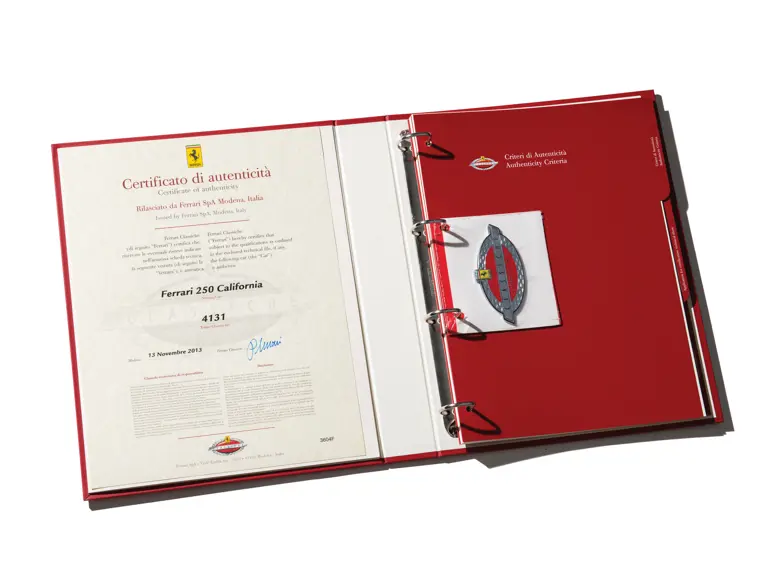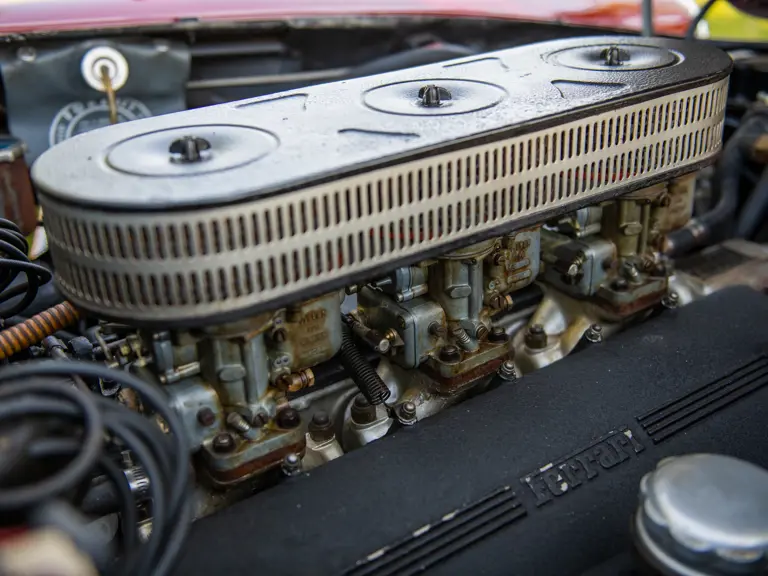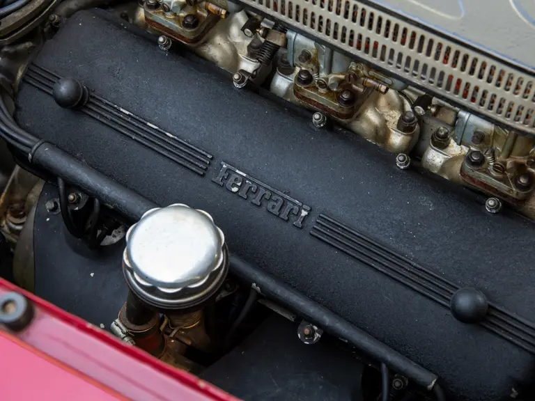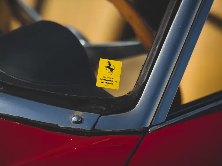 Recently the car was awarded its all-important Ferrari Classiche certification, recognizing that it remains as it was delivered from the factory, including the original engine, gearbox, differential, and other drivetrain components, down to the Borrani wire wheels. It is accompanied by its Red Book, verifying its originality and authenticity, and could well be considered the most original and unmolested survivor of its kind—important when considering a model that was frequently used hard by the original owners.