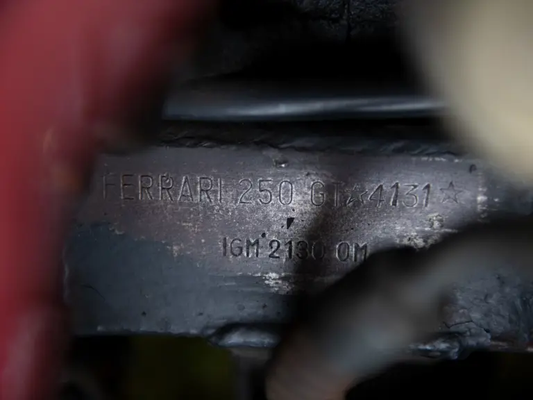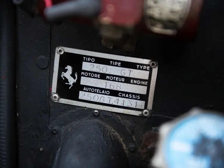 With covered headlight examples commanding a large and historically unprecedented premium over equal-quality open-headlight examples in today’s market, 4131 GT presents a very interesting opportunity to the discerning collector. At only a modest premium to a Series 1 Pininfarina cabriolet or 250 LWB California Spyder, 4131 GT’s latest tipo 168/61 motor, Dunlop disc brakes, and upgraded suspension offer a noticeably improved driving experience over the earlier models. It is easy to say of this automobile what has been said before about its brethren, speaking of its rarity, its specification, and its performance. Chassis number 4131 GT is, however, something truly special, as an automobile that remains much as its early enthusiast owners drove it. It still joyfully wears their fingerprints and still appears ready to take on an open road with a new caretaker behind the wheel, shifting through the gears and enjoying the amazing sound of an iconic V-12.