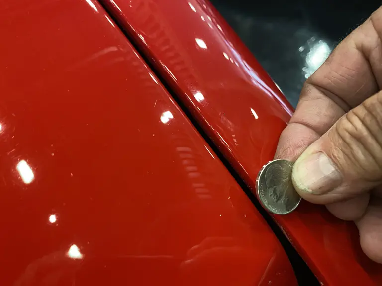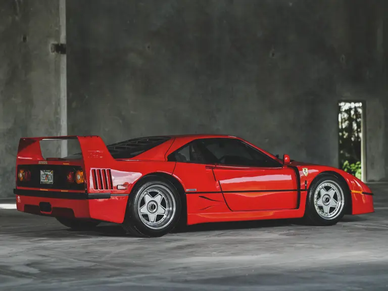 Claiming very minimal driving use while being fastidiously maintained, this beautifully presented F40 is one of the lowest-mileage examples offered in recent memory. According to the combined records of marque expert Marcel Massini and Ferrari Classiche, chassis no. 87627 was built during December 1990, finished in the standard color combination of Rosso Corsa paint over an interior of Rosso Stoffa Vigogna (red vicuna cloth) upholstery. This car is one of the 213 examples specified for the United States, and it was delivered new for retail in March 1991 to the well-known Foreign Cars Italia of Greensboro, North Carolina.