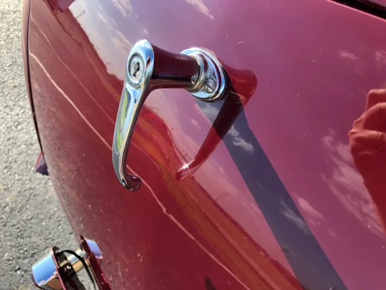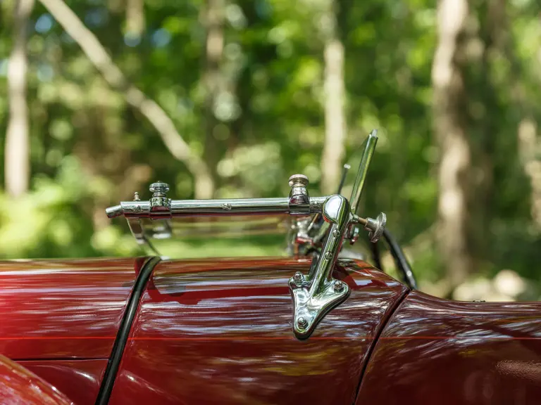 Some 278 LG45s were produced between 1936 and 1937 in a range of body styles. Of these, just 25 were specified as tourers, and of this already exclusive group, perhaps as few as 17 are known to have survived to the present. Skillfully penned by Frank Feely, Lagonda’s in-house designer, the tourer was immediately recognized as an exceptional design; this car, chassis 12043, was one such car graced with this handsome lightweight coachwork. Tourer bodywork featured sweeping full fenders and stately dual-sidemount covers; in one is the expected spare wheel and tire, while the other conceals a flashlight, spare spark plugs, and a knock-off hammer.
