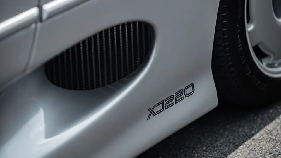 At one time distinguished as the world’s fastest production automobile, the Jaguar XJ220 humbly began as the pet project of a number of Coventry’s design staff, who were soon dubbed the Saturday Club for their efforts after regular business hours. Director of product engineering Jim Randall conceptualized the model as an extension of the successful XJR sports racers, originally envisioning a dual-purpose V-12–powered Group B car with all-wheel drive capable of competing with the Ferrari F40 and Porsche 959.