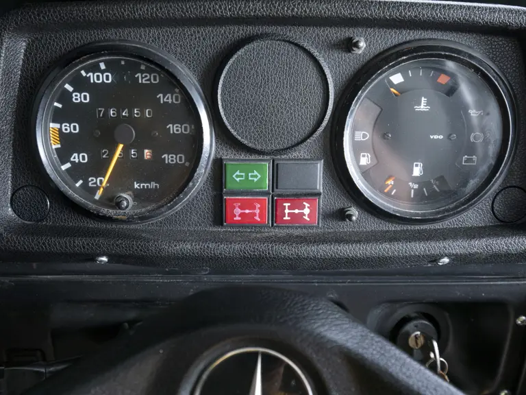This example, with its single cab finished in matte dark green and the fold-down truck bed presented in black, is understood to have been imported into the United States from Belgium in 2020. The current specification suggests slight modifications from the manufacturer build, with this truck fitted with a turbocharged diesel powertrain. The 290 GDs of the era would have been powered from the factory by a non-turbo, 2.9-liter diesel unit. In addition, the Mercedes-Benz has received an upgrade from its standard four-speed gearbox to five-speed, with overdrive transmission, and is equipped with air conditioning, another non-standard feature.