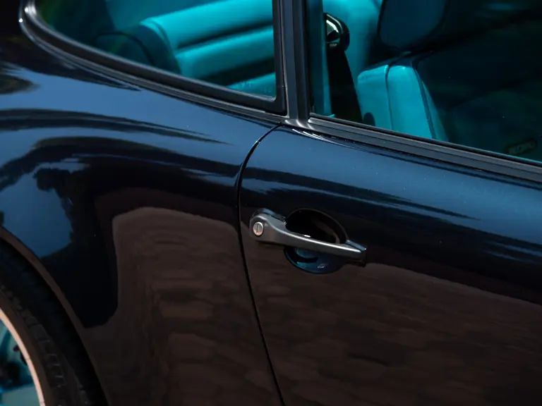 Taking inspiration from a hand-me-down two-tone sweater from his childhood, Brodbeck had the car painted in a striking dark blue metallic and turquoise paint scheme. Due to the livery’s complexity, it had to be taken off the assembly line and painted at a specialized shop in Bietigheim, down the road from Stuttgart. Inside, the car featured a full turquoise interior with leather on every conceivable surface, including the parcel shelf, sunvisors, and impressively, the rotary switches, demanding the best of Porsche’s craftsmen.
