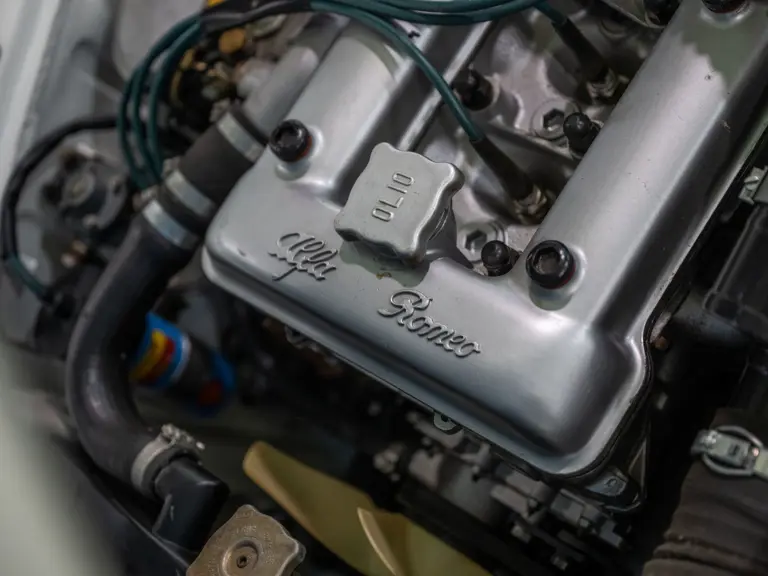 Following its arrival stateside, the car was treated to a comprehensive restoration to its current presentation. Work included a multi-stage refinishing in its present shade of Bianco over a tastefully trimmed mix of dark and light blue fabric upholstery. The Giulia Sprint Speciale’s potent 1.6-liter twin-cam four-cylinder engine likewise displays the hallmarks of an extensive restoration, featuring many period-correct components while being fed by twin Weber 40DCOE two-barrel carburetors.