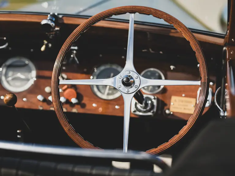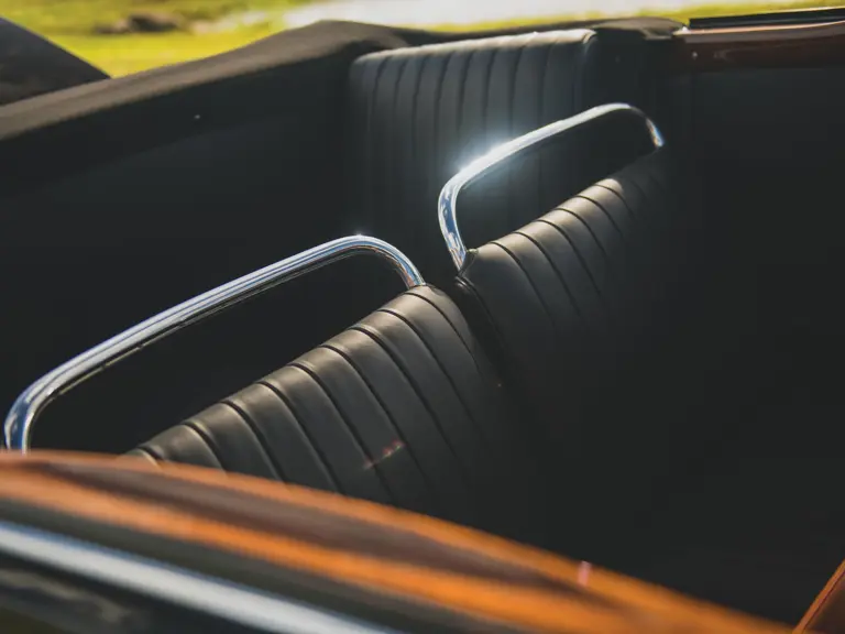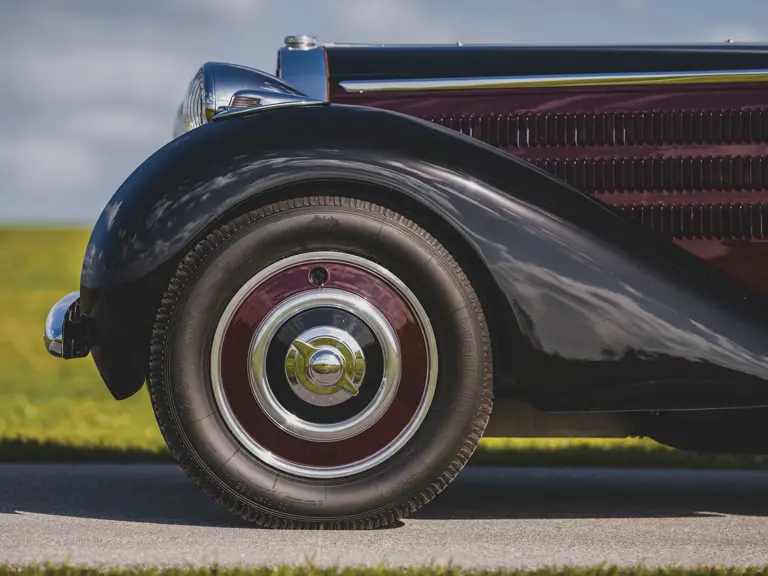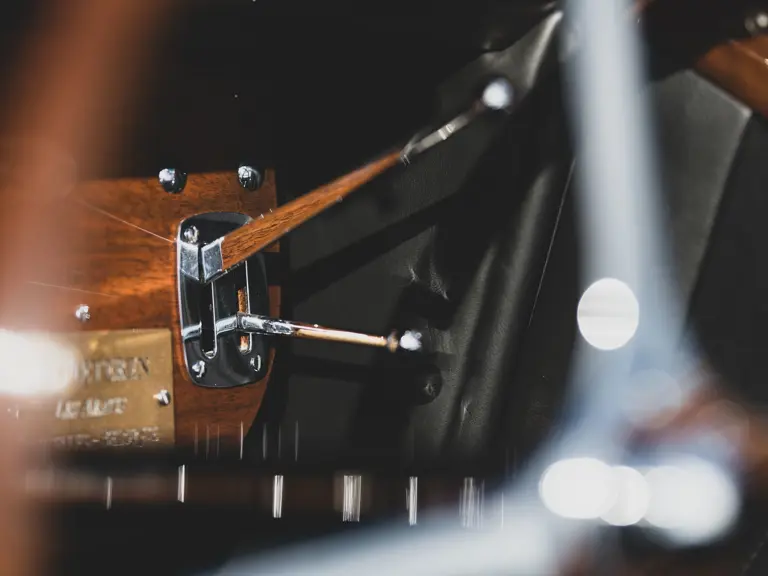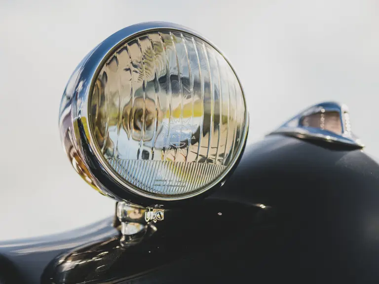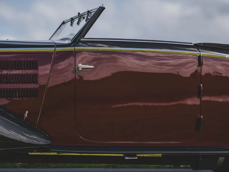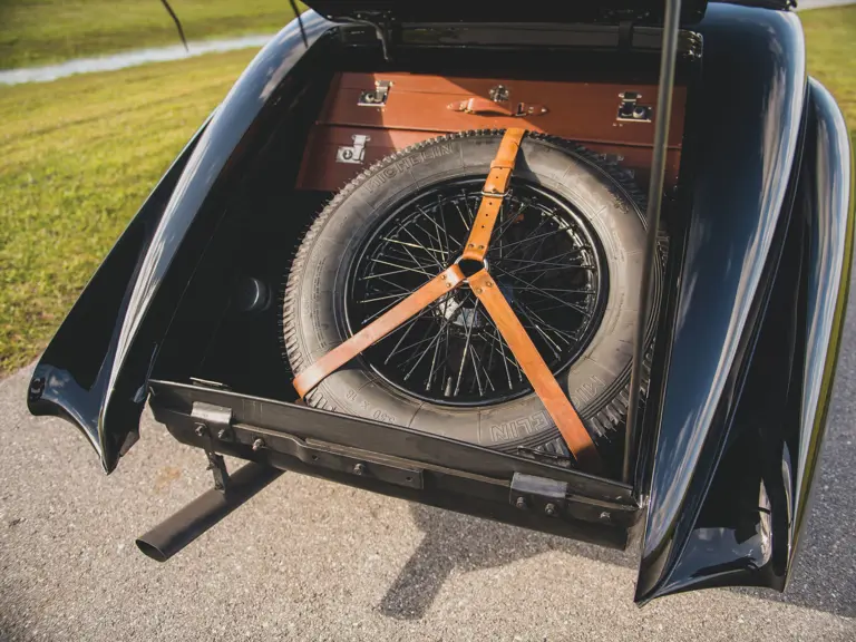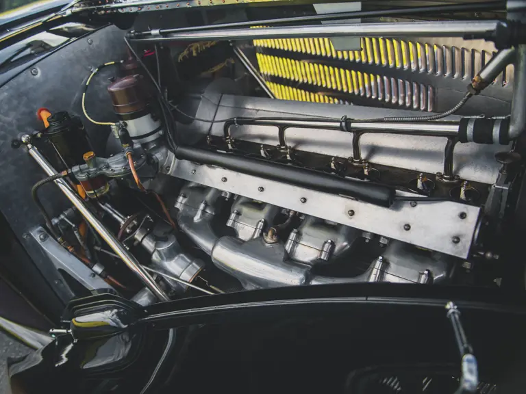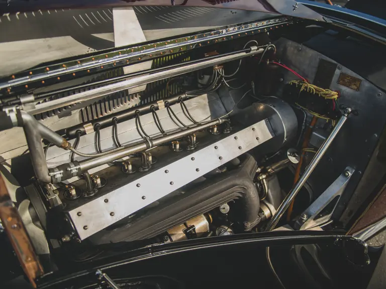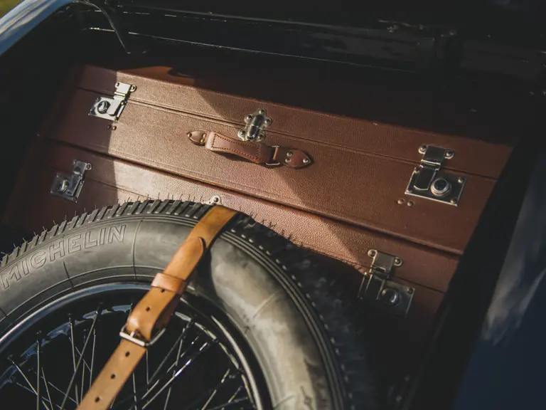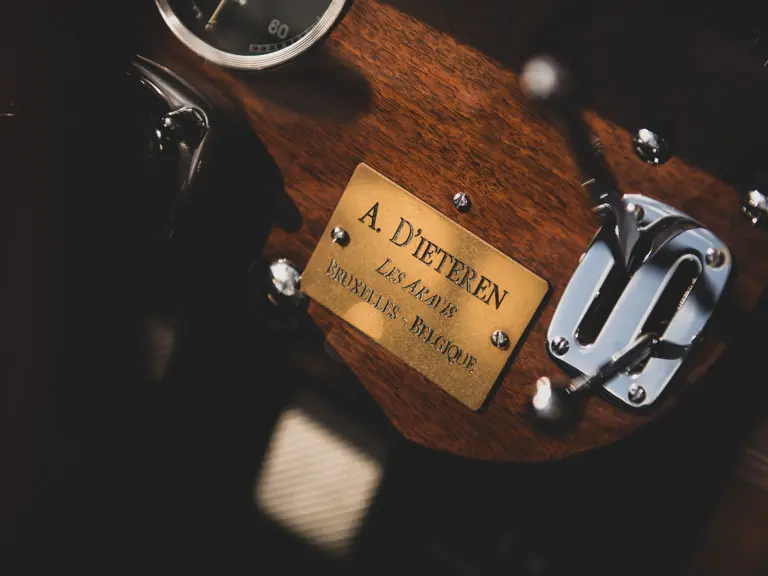 This exceptional car retains most of its original factory components, including its twin-cam straight-eight engine, the original chassis frame, and the exquisitely sculpted D’Ieteren coachwork, a genuinely one-off design inspired by one of the factory’s finest creations. It is documented with restoration invoices from Jim Stranberg, Pichler, and Scott Sargent over its prior ownerships, as well as various historical documents. Most striking of all are a D’Ieteren photo album, including period images, and sets of both tools and unrestored original luggage.