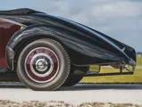 In 1938, Jean Bugatti and Molsheim bodywork leader Joseph Walter penned a new open Type 57, dubbed the Aravis in a nod to an Alpine mountain range, with a two-passenger interior, sharply raked windscreen, and a dramatically sloped tail with a small central dorsal fin. Construction was delegated to Gangloff’s coachworks in Colmar, and it is believed that no more than 12 examples were built, with just three remaining in existence. Considering, however, that Type 57s were also sold as rolling chassis to be clothed by the customer’s chosen coachbuilder, it is little surprise that several additional cars were built to specifications that aped the factory-contracted Aravis—imitation, of course, was and is the sincerest form of flattery.