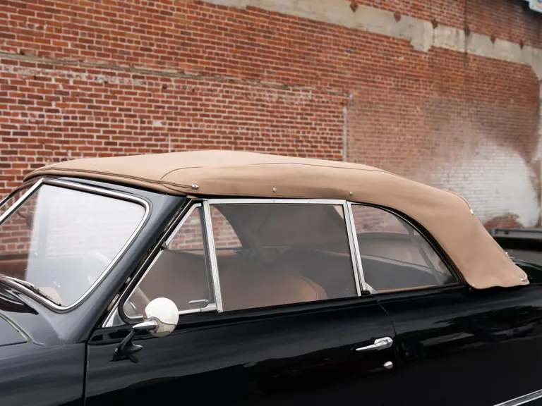 The Custom Convertible offered here has been part of the Mitosinka Collection since 1987, when it was acquired from Val Johnson of Anaheim, California, who is believed to be the original owner. Many years ago it was the recipient of a cosmetic restoration in Raven Black with brown leather upholstery and tan canvas top. Accessories include an AM radio and overdrive, turn signals, chrome full wheel covers, and wide whitewall tires. Inspection of the car shows the paint exhibits extensive cracking around the usual stress areas and is older overall, while the top and interior remain in good overall condition with minor signs of age. Under the hood and underneath the car, all appears very original and largely untouched, including what appears to be early or original undercoating, and correct Ford hoses and air cleaner. A correct gas tank was installed in 2014. The trunk floor is still solid, indicative of an overall well-preserved life. A full-size spare is tucked into the trunk itself.