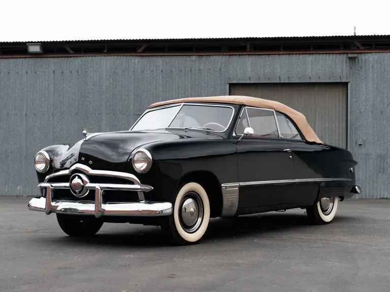 As automobile production resumed after World War II, offerings were generally limited to existing prewar designs, but by 1949, the Big Three had fresh, innovative concepts on sale. Ford was first, showing all-new 1949 models on 8 June 1948. They were as un-Ford-like as anything the public had ever seen. Slab-sided and streamlined, the company proudly announced that the New York Fashion Academy had judged Ford the “Fashion Car of the Year.” Today the 1949 Ford is widely and justifiably credited as a clean, crisp American design classic, and one of the most famous U.S. automobiles ever produced.