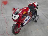 Die 999R holte alles an Leistung aus der 2006 für mehr Leistung verbesserten 999 Plattform heraus. Mit einem geringfügig größeren Brennraum leistete die 999 cm³ R 150 PS und schaffte den Spurt von 0 auf 100 km/h in weniger als drei Sekunden. Das hier angebotene Exemplar präsentiert sich in Fila-Lackierung, als Anspielung auf die Maschine, mit der Hodgson 2003 den ersten Platz in der Superbike-Weltmeisterschaft belegte. Die Ducati wird von einer Motorradabdeckung und einem Paddock-Ständer begleitet.