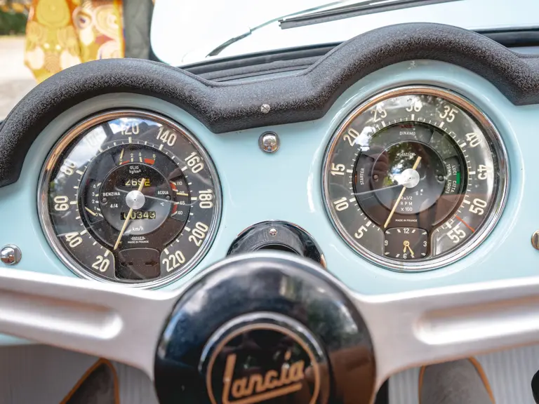 According to an accompanying Lancia Certificate of Origin, chassis 1561 was completed on 4 April 1958, finished in Grigio Chiaro over Pelle Rossa. The certificate further confirms that the car retains its matching-numbers chassis and engine. While little is known of the car’s early life, registration documents note that the car was imported to Italy from Switzerland in 2014 and registered on 24 January of that year. It remained with the same owner until 26 July 2022, at which point it was acquired by the consignor, presenting in restored condition with a smartly trimmed interior, high-quality paintwork and neat panel gaps. The car was imported to Finland, and is accompanied by assorted tools, a Lancia Certificate of Origin, and an owner’s manual.