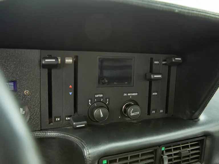Completed by the factory in White over a Black interior, the M1 finished its first phase of production in Italy on 21 September 1979, then was marked complete by Baur on 9 November. Very soon after its production date, the BMW was given the ‘Exclusiv’ finish by Maurer that it still wears to this day. Gaining a refinished Pearl White base coat, which the car wears on its front lip, sides, and rear haunches, the M1 wears a notably darker shade of grey airbrushed on its bonnet, engine cover, and roof, which serve to accentuate the M1’s sharp profile. The all-white wheels are complemented by several black details around the body, while the M1 bears Maurer’s signature underneath the right rear light cluster. The BMW is accompanied by a copy of a letter by Maurer, who recounts imagining the car’s unique design with its first owner. The finish was achieved while the M1 was still relatively new, thought to have covered around 200 kilometres at the time.