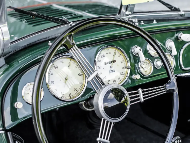 Shipped to Babenhausen, Germany, a three-year restoration followed, with much of the work carried out by specialist Bruno Kühnis near Zurich. At this point, the aluminium body was returned to standard, and the car’s factory green hue reapplied. Special care was taken to preserve the originality of the shell, wooden substructure, engine, gearbox, and rear axle. Please note that the 1,971-cc straight-six has been re-stamped “85065” using an original BMW 2-litre block.