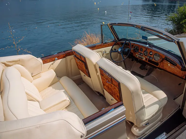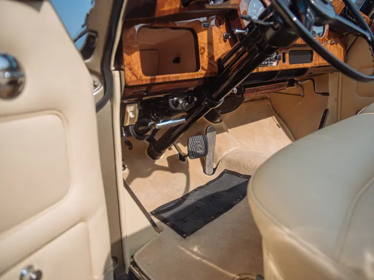 This 1962 example, chassis number LSAE 639, is the last Silver Cloud II Drophead Coupé Adaptation of the 107 built. It was ordered by Boyd Hipp of Greenville, South Carolina, who requested a left-hand-drive, US-specification model with electric windows, aerial, and air conditioning. Mulliner installed various features supplied by London coachbuilder Harold Radford, including Perspex sun visors, a fitted locker with an ice thermos in the left-hand door pocket, a cocktail bar, and removable “toadstool” cushions for the rear bumpers to provide seating for elegant “tailgate” dining.