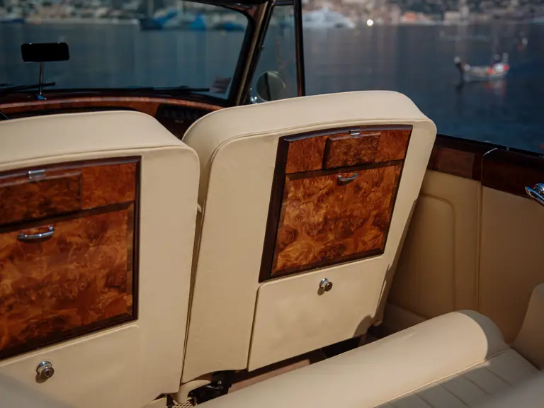 Dieses 1962er Exemplar einer Drophead Coupé Adaptation, Chassisnummer LSAE 639, ist das letzte von nur 107 gebauten Exemplaren auf Basis des Rolls-Royce Silver Cloud II. Der Erstbesitzer, Boyd Hipp aus Greenville im US-Bundesstaat South Carolina, bestellte einen Wagen in US-Ausführung mit Linkslenkung, elektrischen Fensterhebern und Antenne, sowie Klimaanlage. Bei Mulliner wurden weitere Details aus dem Angebot des Londoner Karossiers Harold Radford verbaut, darunter Sonnenblenden aus Perspex, eine abschließbare Eisbox in der Fahrertür, eine Cocktailbar und abnehmbare Zusatzsitze, die auf die hintere Stoßstange aufgesetzt werden konnten – ein Muss für ein elegantes Tailgate-Dinner.