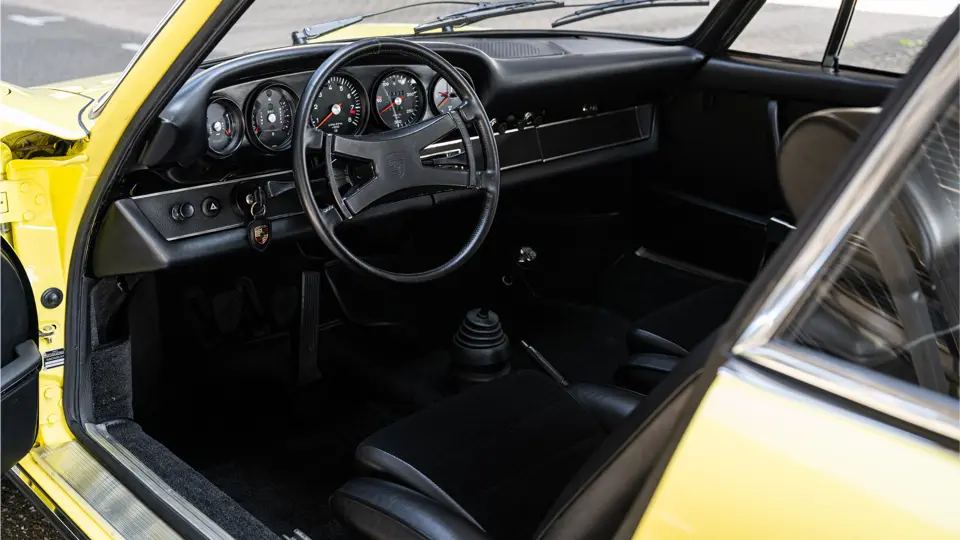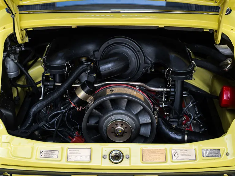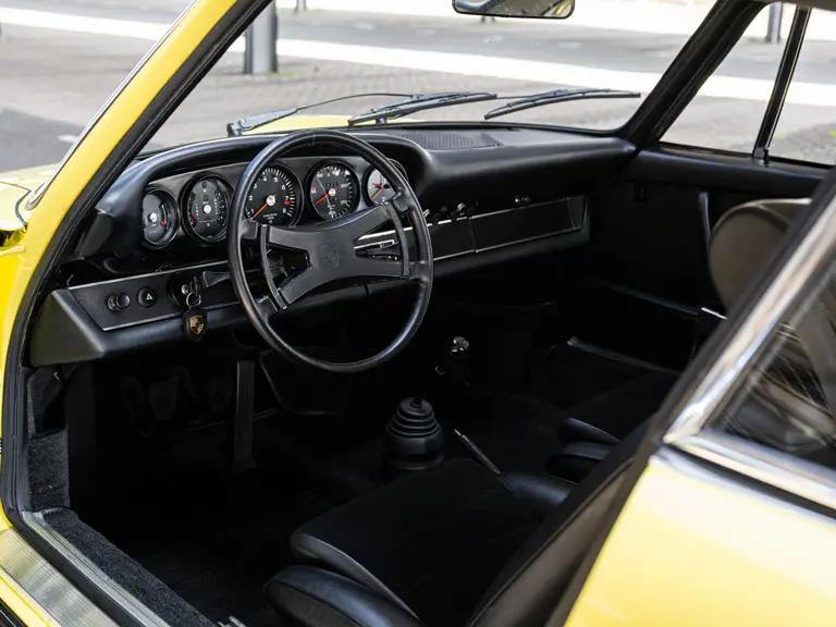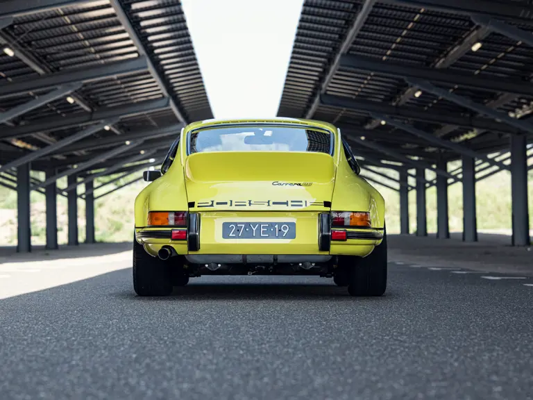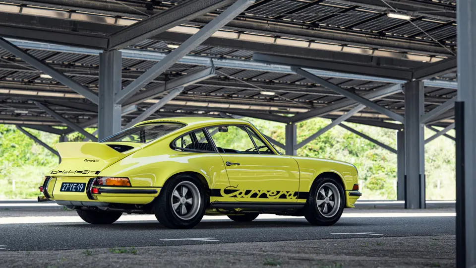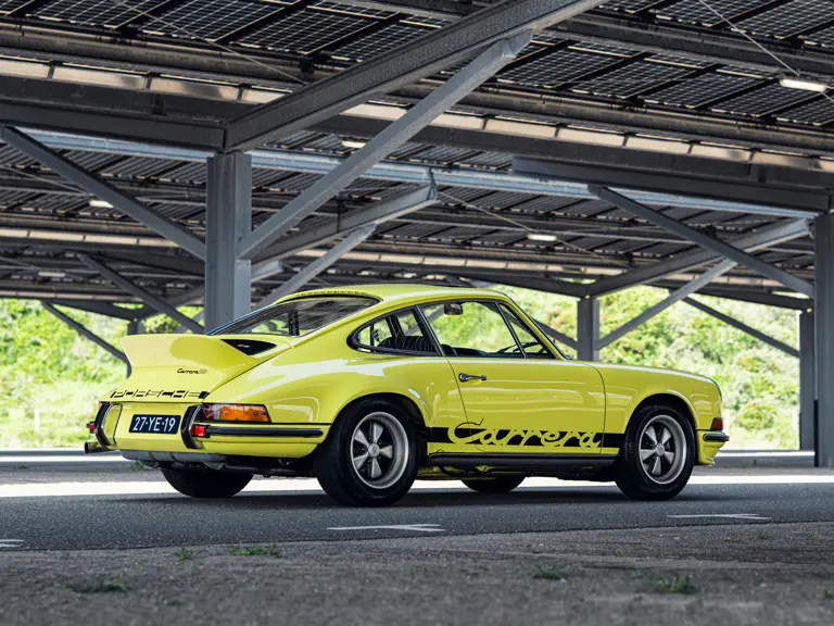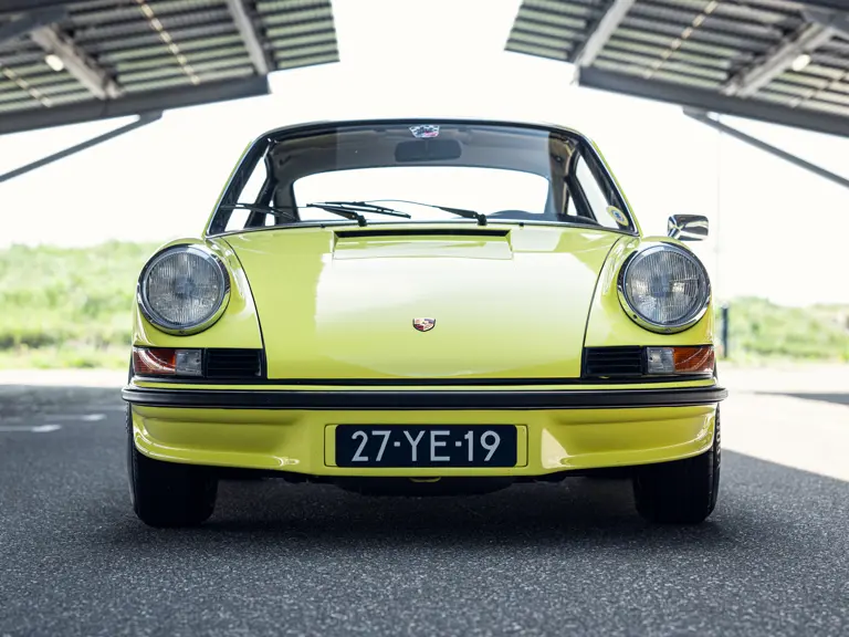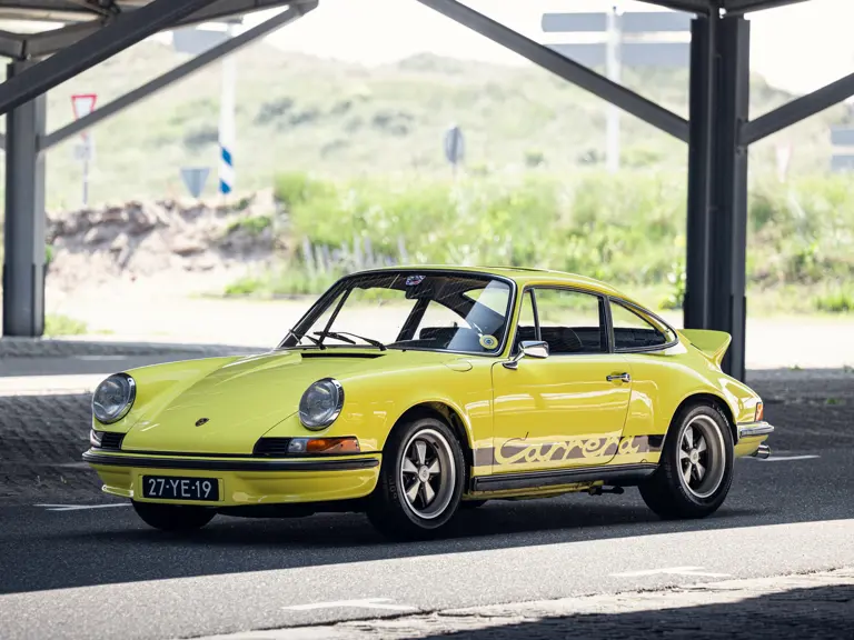 Dieser sofort an seinem „Entenbürzel“-Spoiler erkennbare Porsche 911 Carrera RS 2.7 wurde im April 1973 fertiggestellt und über die Münchner MAHAG ausgeliefert. Ab Werk hellgelb, wurde der Wagen mit elektrischem Schiebedach, elektrischen Fensterhebern und beheizter Heckscheibe bestellt. Geordert wurde auch die Option „M472“, was ihn als eines der begehrten Touring-Modelle ausweist.