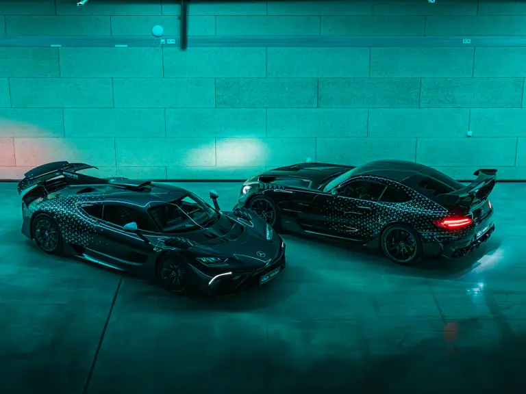 Der AMG ONE ist auf nur 275 Exemplare limitiert und gehört zu den komplexesten Straßenfahrzeugen, die jemals entwickelt wurden. Fünf Motoren – darunter der Verbrennungsmotor sowie die aus der Formel 1 stammenden Motor Generator Unit-Heat und Motor Generator Unit-Kinetic – leisten zusammen 1.063 PS. Diese Leistung in Verbindung mit Allradantrieb und einem Xtrac-Siebenganggetriebe erlaubt einen Sprint von 0 auf 100 km/h in nur 2,9 Sekunden und eine Höchstgeschwindigkeit von 352 km/h. Außerdem verfügt der AMG ONE über aktive Aerodynamik, wie einen Heckflügel im F1-Stil mit Drag Reduction System und vier Klappen, die über jedem vorderen Radkasten ausgefahren werden, um turbulente Luft abzuleiten. Im maximalen Angriffsmodus „Strat 2“, benannt nach dem ultimativen Qualifying-Trim des Formel 1 Wagens, umrundete Fahrer Maro Engel die Nürburgring-Nordschleife in atemberaubender Rekordzeit von 6:29,090 Minuten.