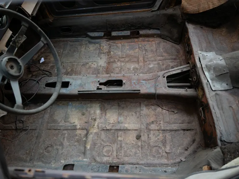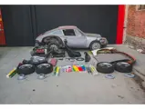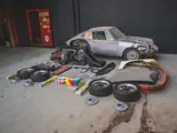A replacement dashboard, Scheel bucket seat, perforated floor footrests, a shifter, and 911 R-style louvered quarter windows will get you started on the buildout of the cabin. The kit also includes four Minilite wheels (plus the steelies the car currently rides on), four brake rotors, and Bilstein shocks.